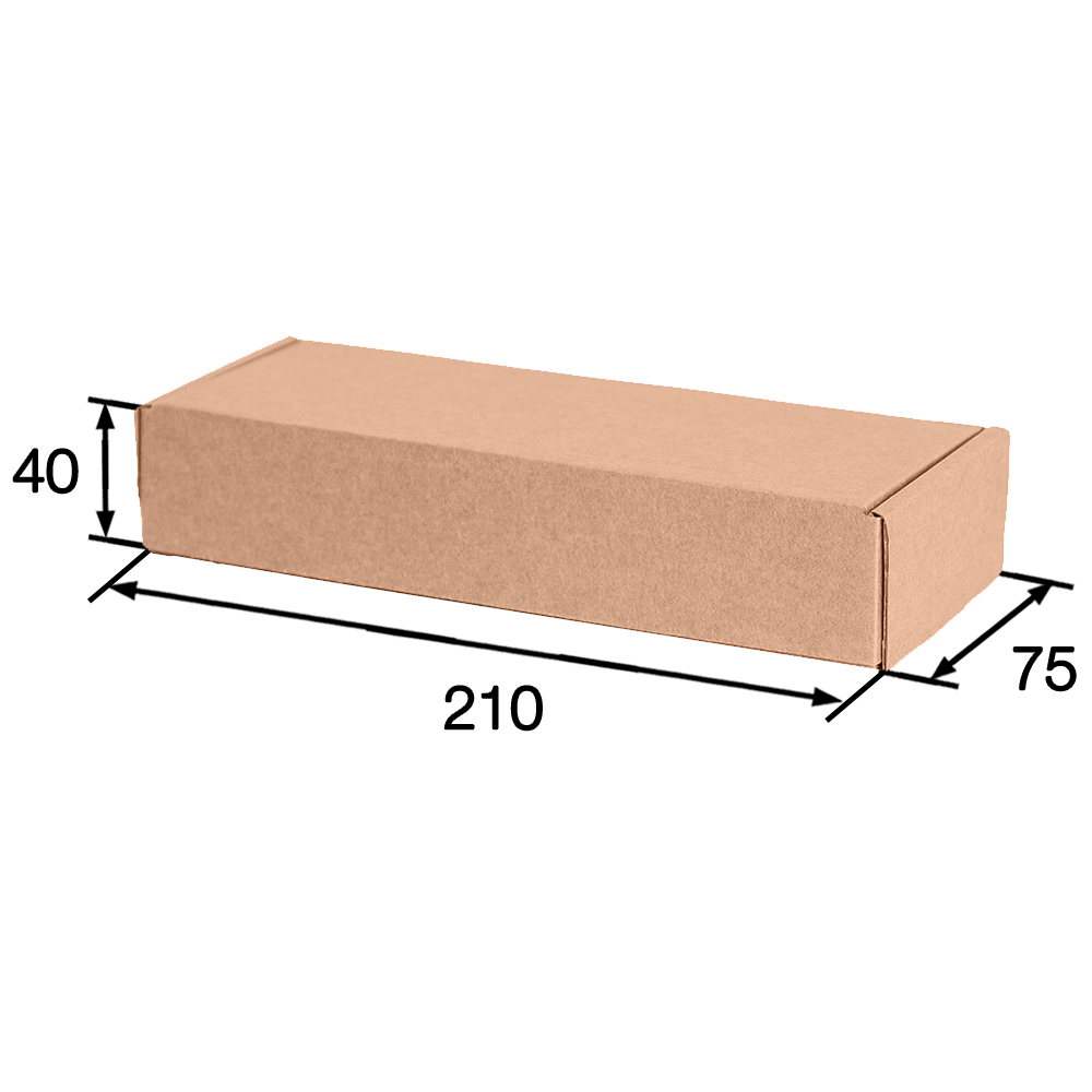 Короб КС-628 МГК, серии КС-600, бурый, длиной 210 мм, шириной 75 мм и высотой 40 мм. Изготовлен из микрогофрокартона Т-23. Полезный объём — 0.6 л.