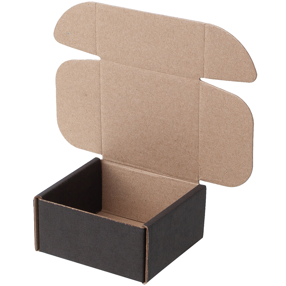 Короб КС-502 МГФ, серии КС-500, чёрный, длиной 50 мм, шириной 50 мм и высотой 25 мм. Изготовлен из микрогофрокартона Т-25. Полезный объём — 0.063л.