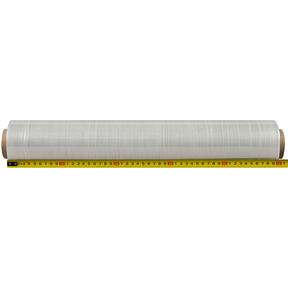 Ручная прозрачная стрейч пленка в рулоне, первого сорта, намоткой 306 м, шириной 500 мм, толщиной 20 мкм. Изготовлена из первичных гранул LLDPE. Производится в России.