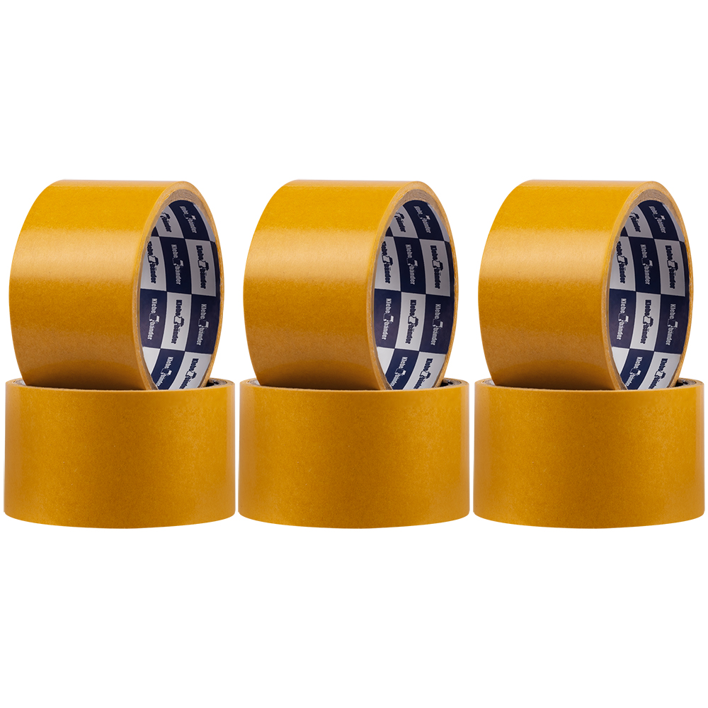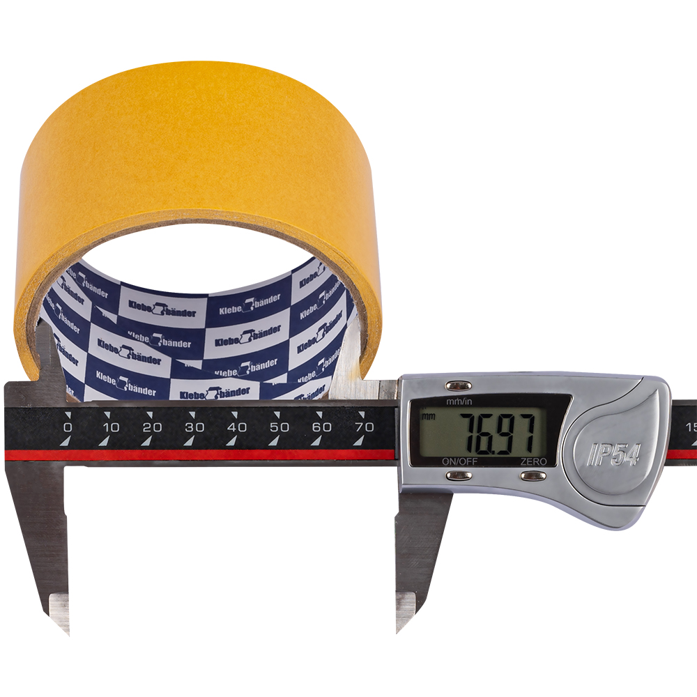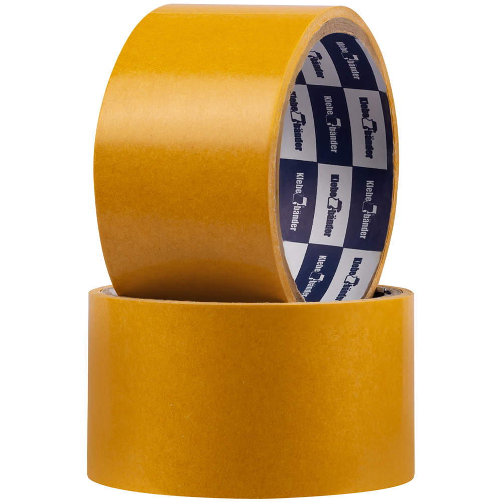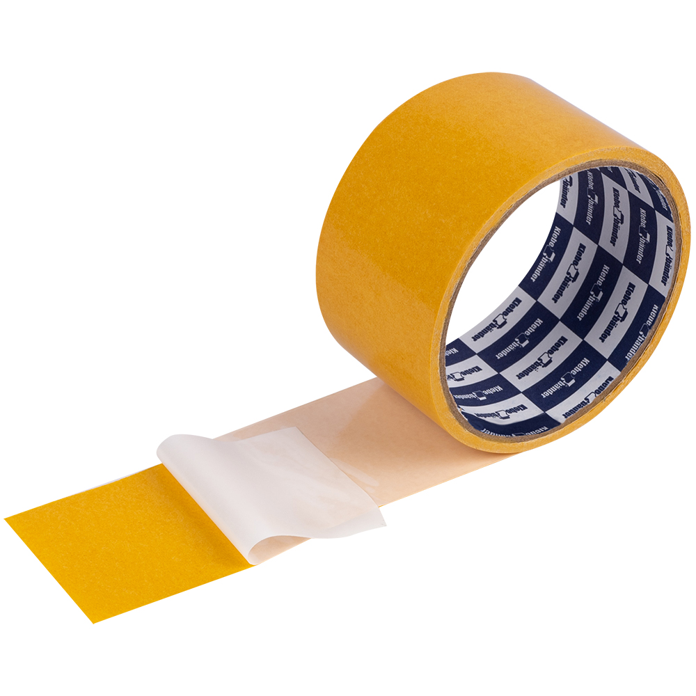 Двухсторонняя клейкая лента Klebebander шириной 50 мм, диаметром втулки 76 мм, намоткой 5 метров. Изготовлена на основе полипропилена.