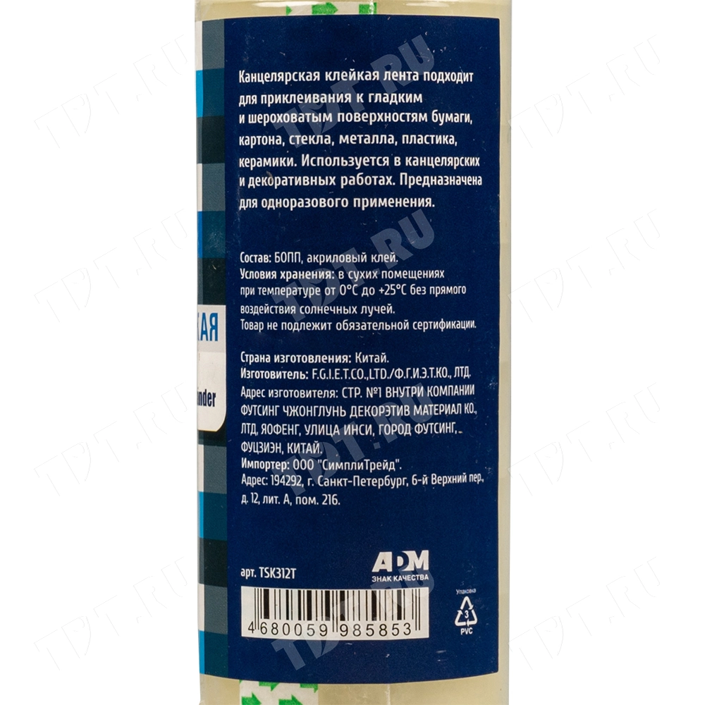 Область применения:Применяется для офисных и домашних нужд, а также для небольшого ремонта. Лента идеально подходит для заклеивания стыков бумажных листов или порванных частей. Ленту можно использовать в узких местах, для упаковки небольших коробок, пакетов, приклеивания плакатов, рекламных материалов, записок и других бумаг.