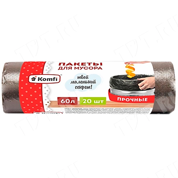 Мешки для мусора ПНД Komfi 60 литров, 60*70 см, чёрные, 20 шт./рулон