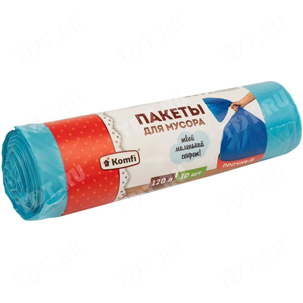 Мешки для мусора ПНД Komfi 120 литров, 70*100 см, голубые, 10 шт./рулон