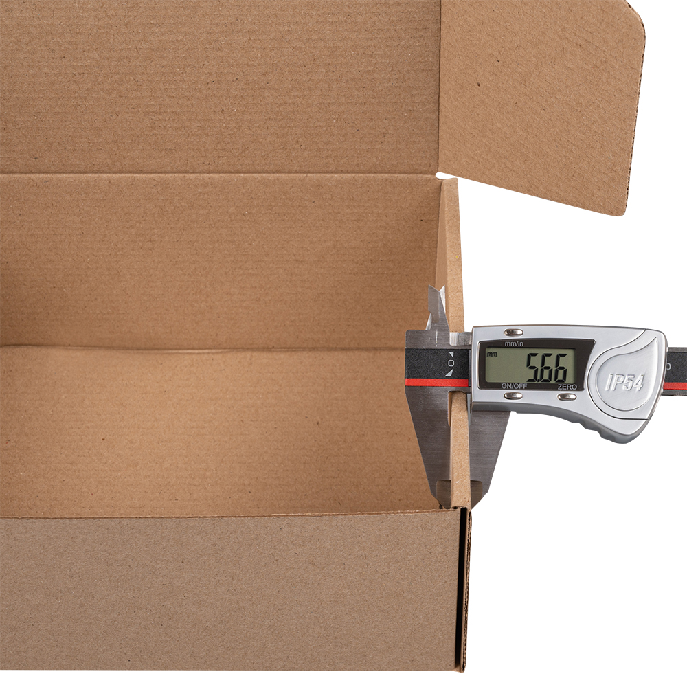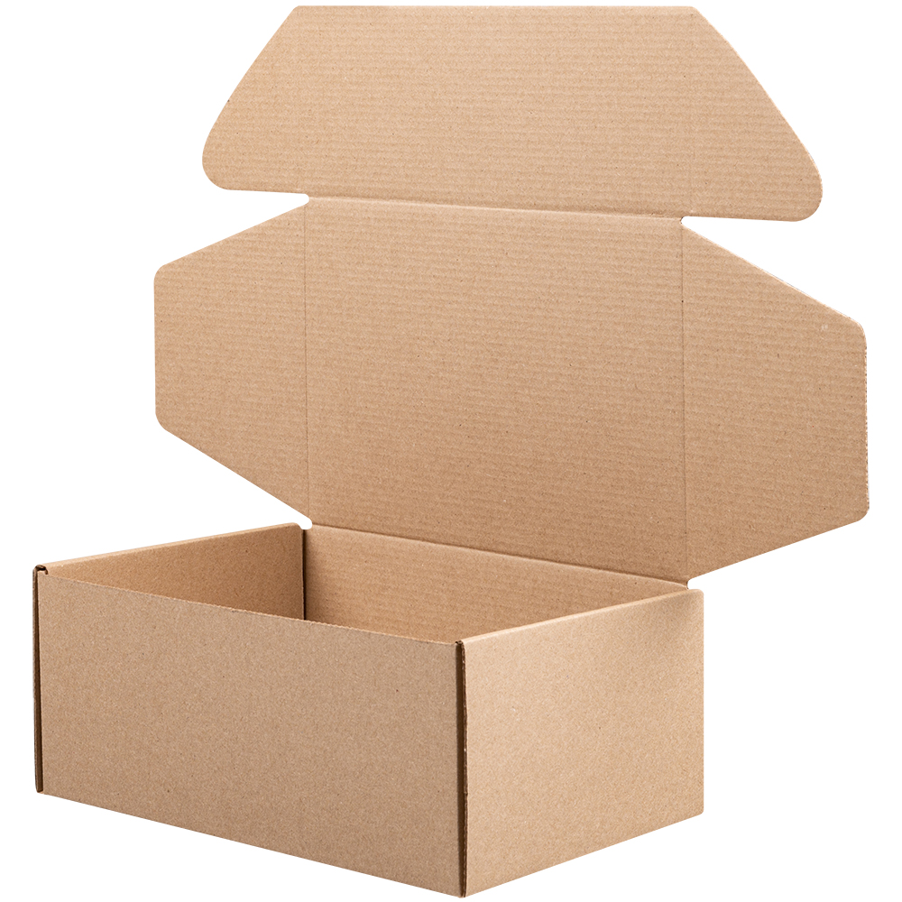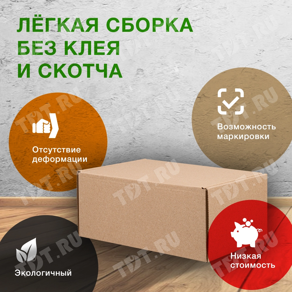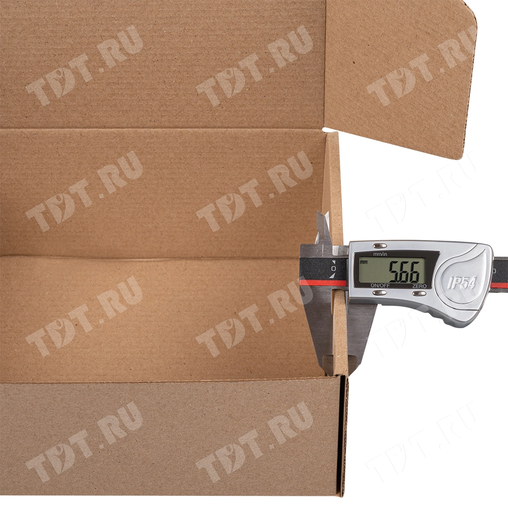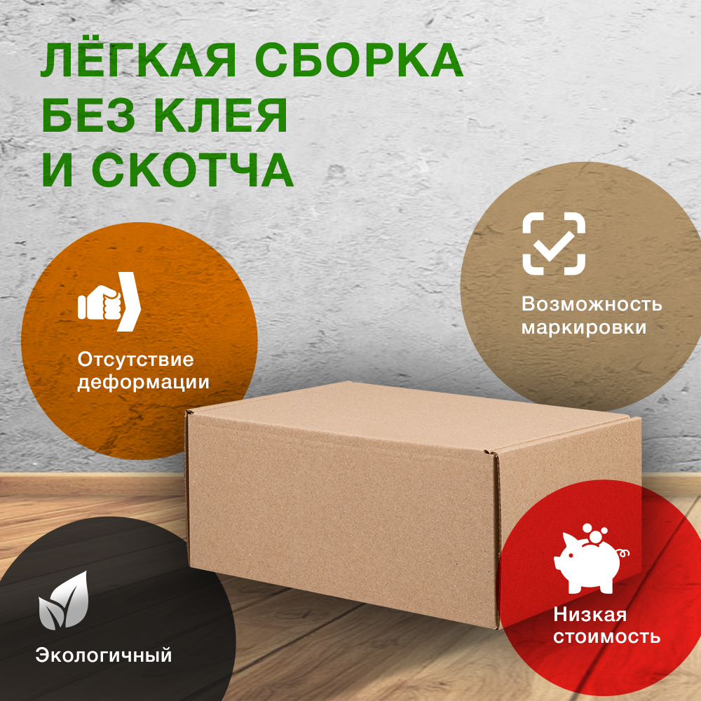 Короб №200 (премиум) бурого цвета, длиной 210 мм, шириной 150 мм и высотой 90 мм. Изготовлен из микрогофрокартона Е-22. Полезный объём — 2.83 л.