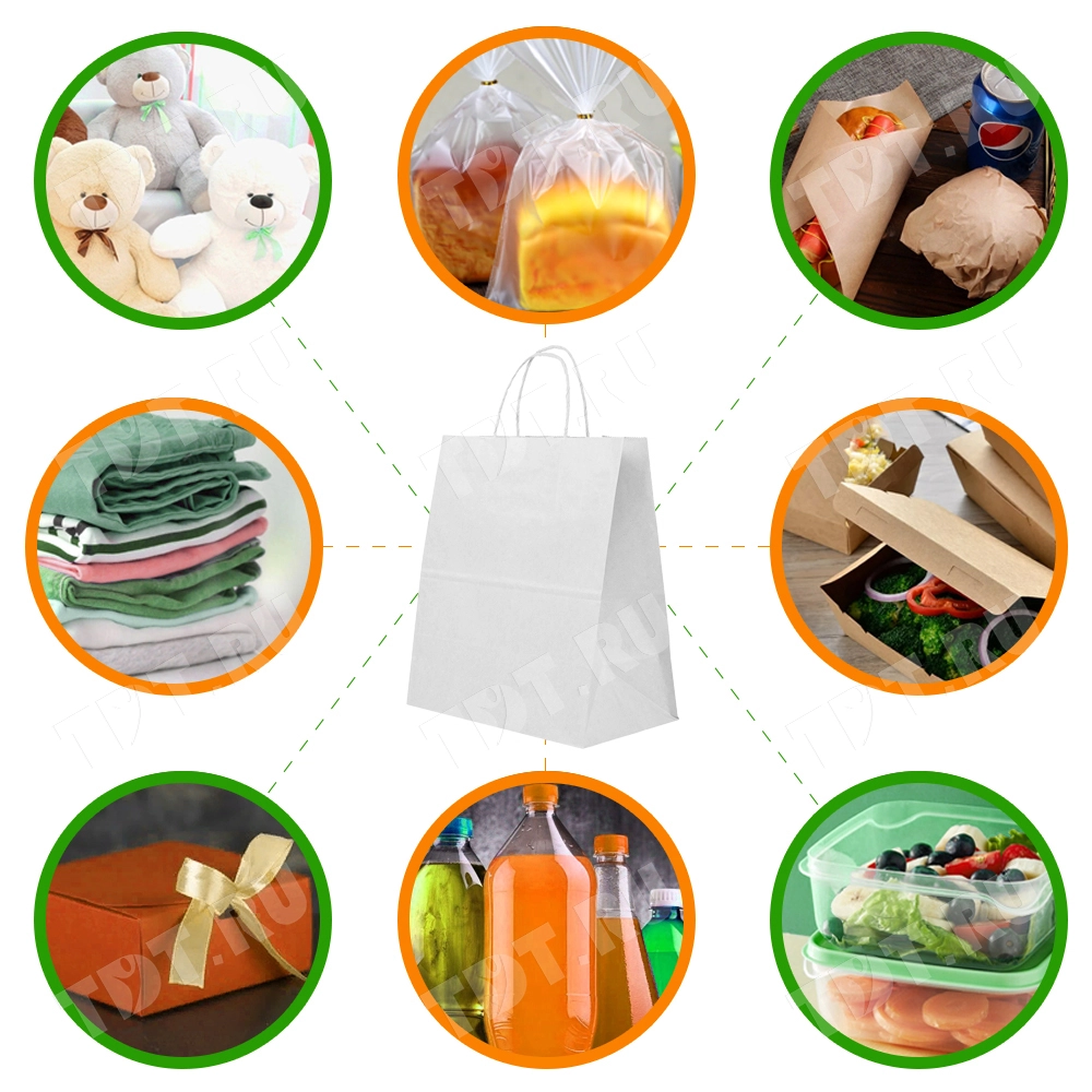 Пакеты с кручёной ручкой используются для упаковки, переноски, хранения продуктов питания и бытовых товаров. Они незаменимы в магазинах, пекарнях, кафе, ресторанах и на фудкортах.