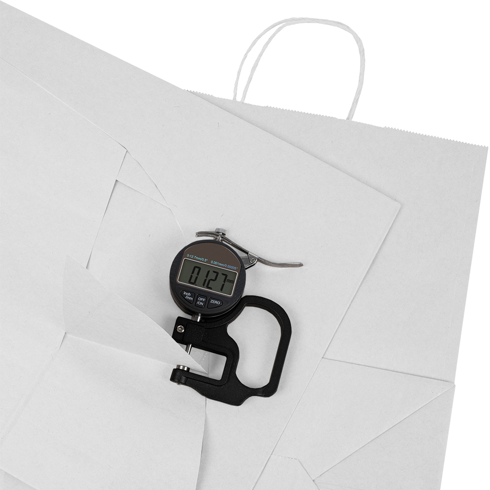 Ручки изготовлены в виде бумажного шпагата путём скручивания и надёжным способом закреплены с внутренней стороны. Это усиливает прочность, износостойкость и придает пакету эстетичный вид.