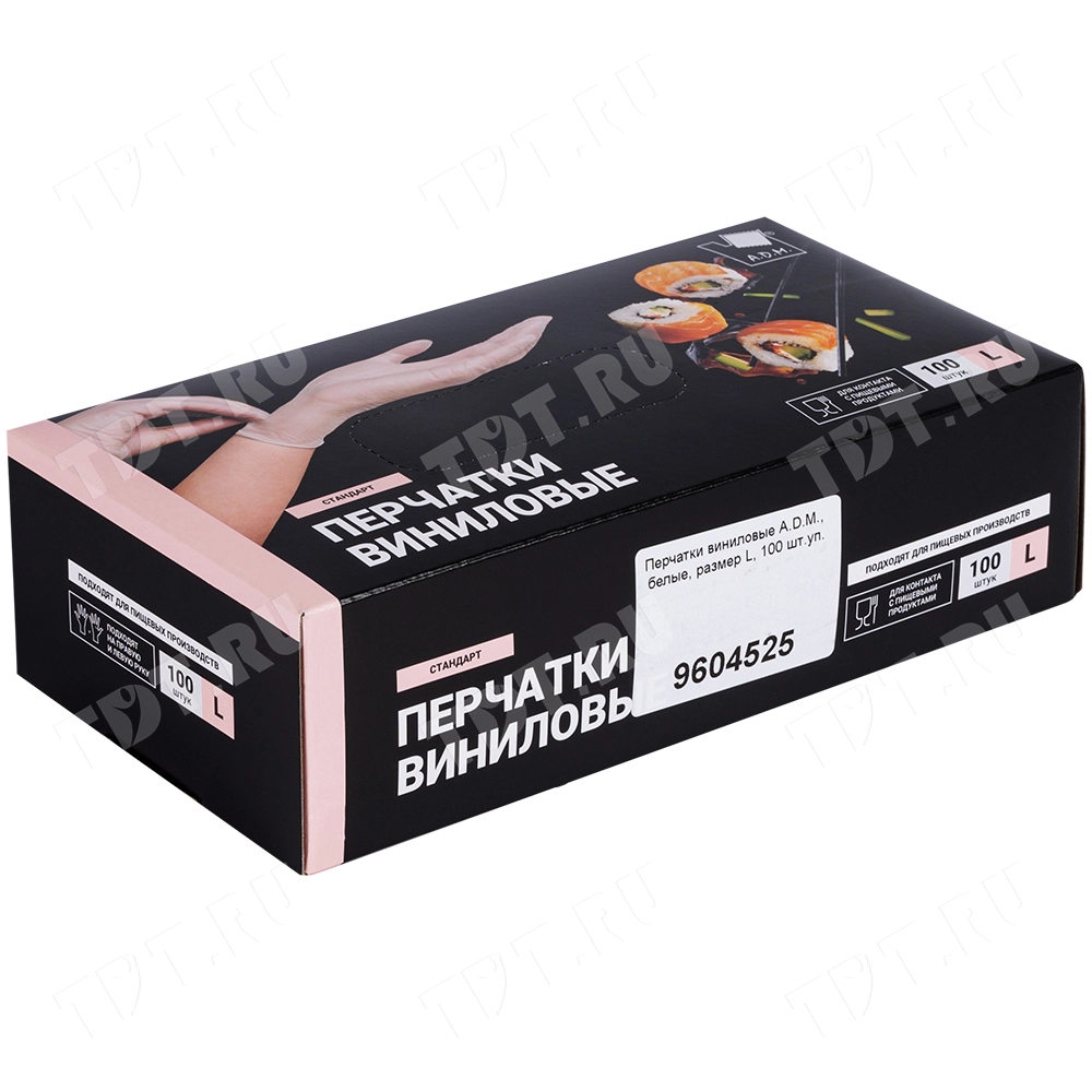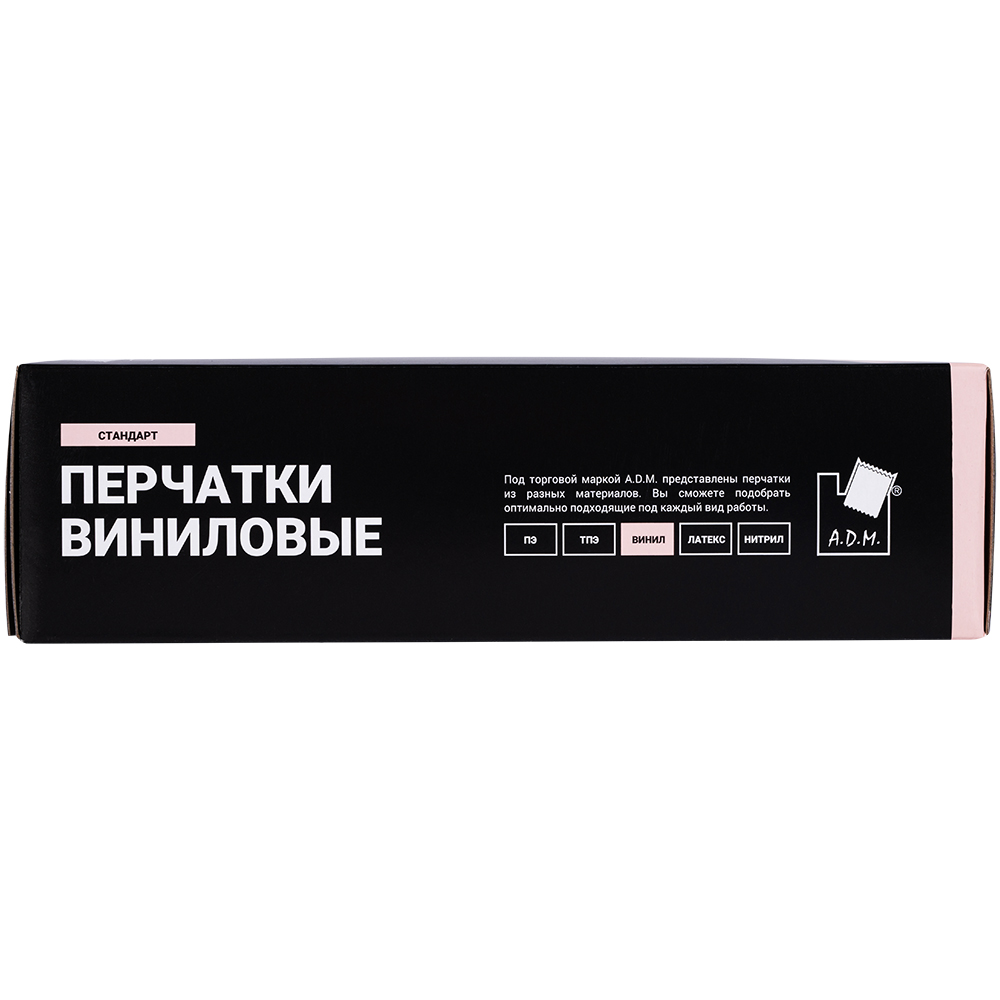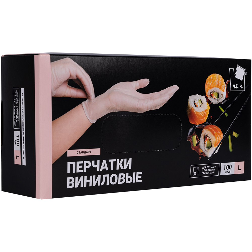Перчатки виниловые A.D.M., белые, размер L, 100 шт./уп.