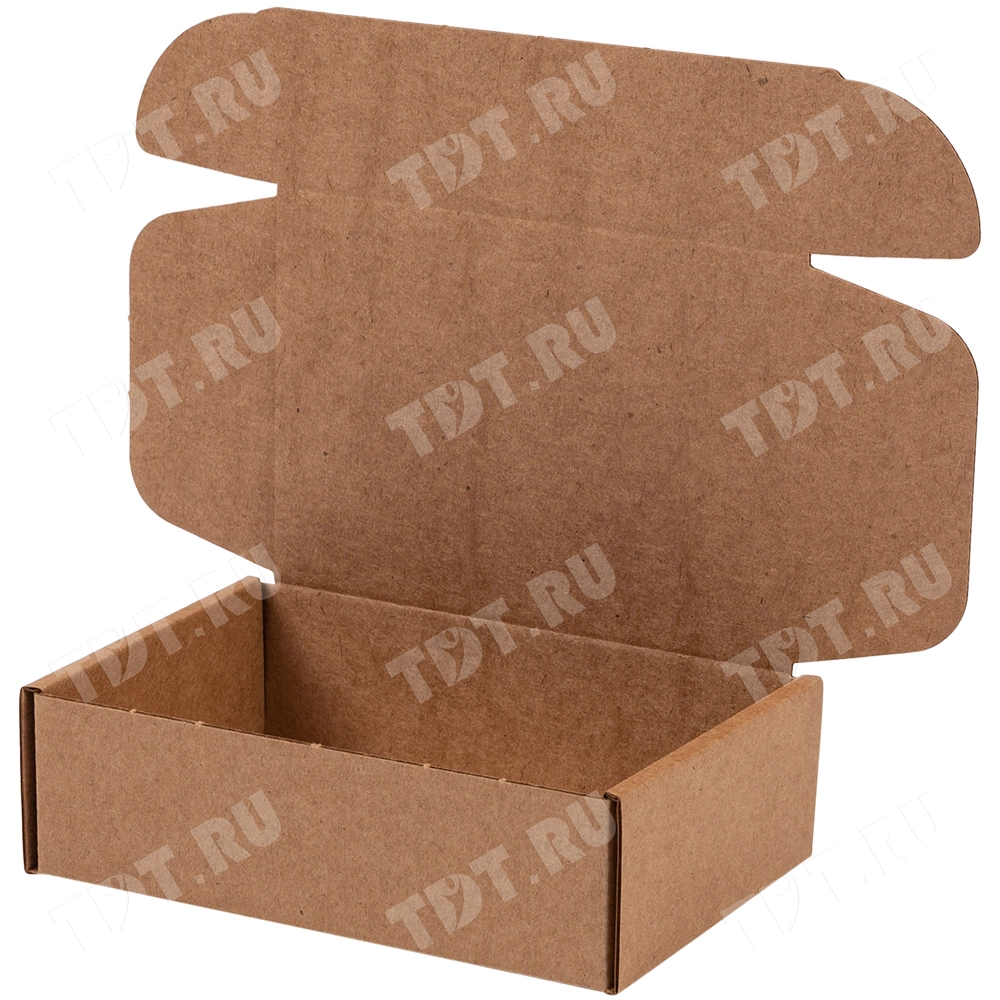 Короб КС-221 бурого цвета, длиной 130 мм, шириной 90 мм и высотой 40 мм. Изготовлен из микрогофрокартона Т-23 Е. Полезный объём — 0.5 л.