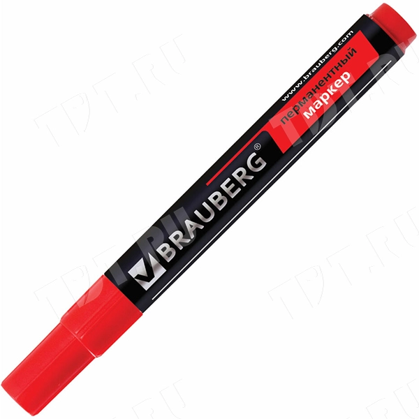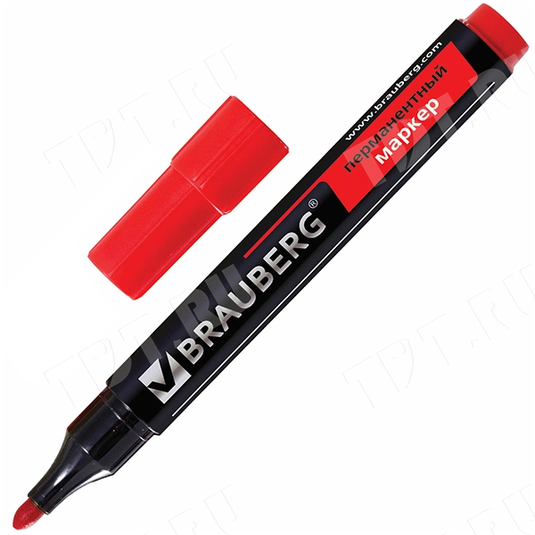 Маркер перманентный BRAUBERG, спиртовой, толщиной пера 3 мм, красного цвета, круглый наконечник, код производителя 150467. Производится в Китае.