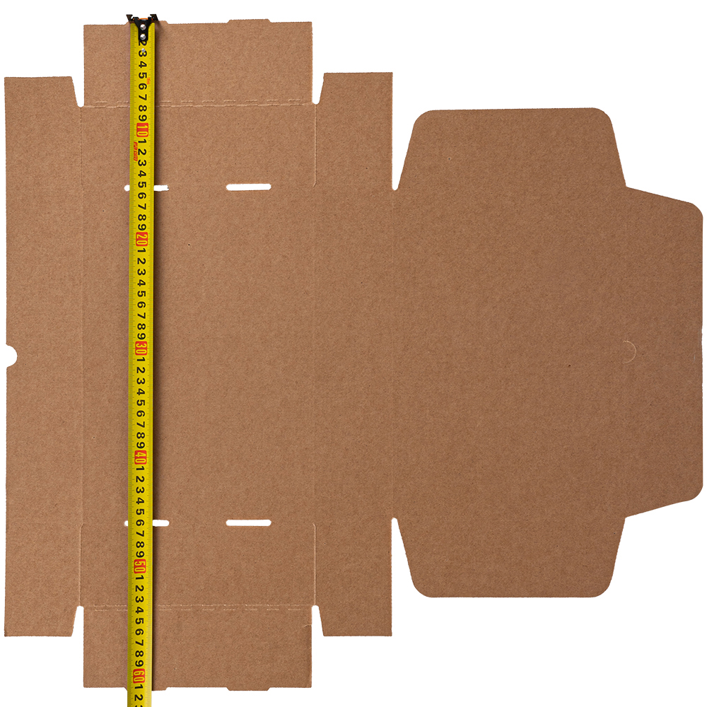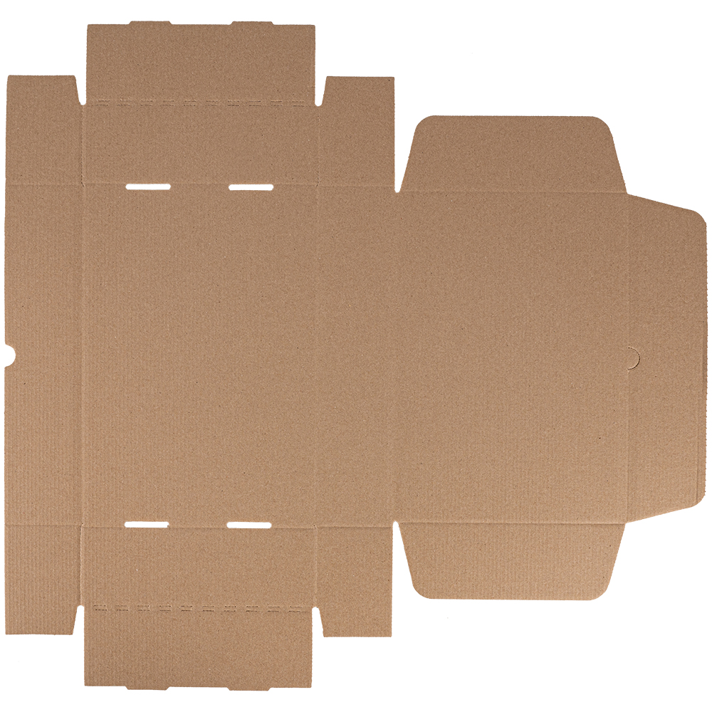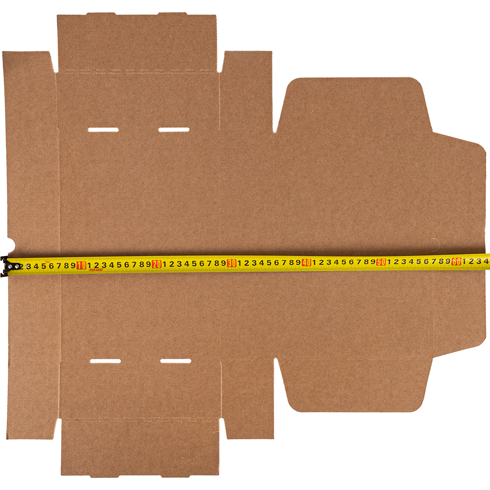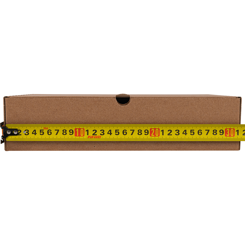 Короб №203 (премиум) бурого цвета, длиной 300 мм, шириной 210 мм и высотой 70 мм. Изготовлен из микрогофрокартона Е-22. Полезный объём — 4.4 л.