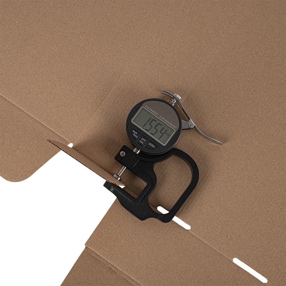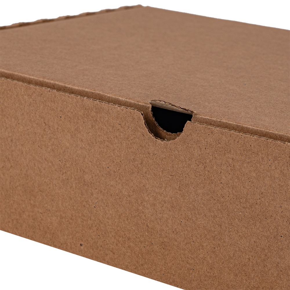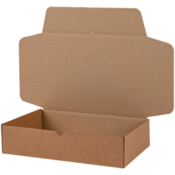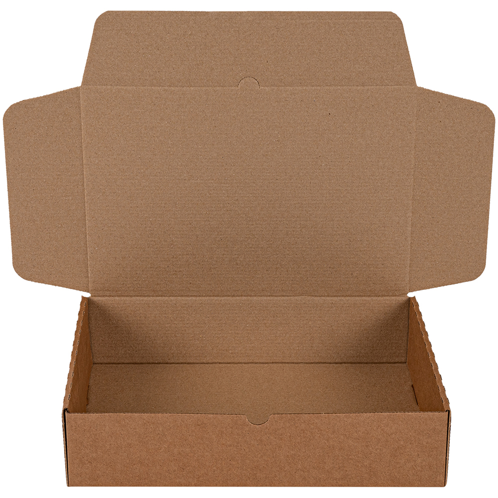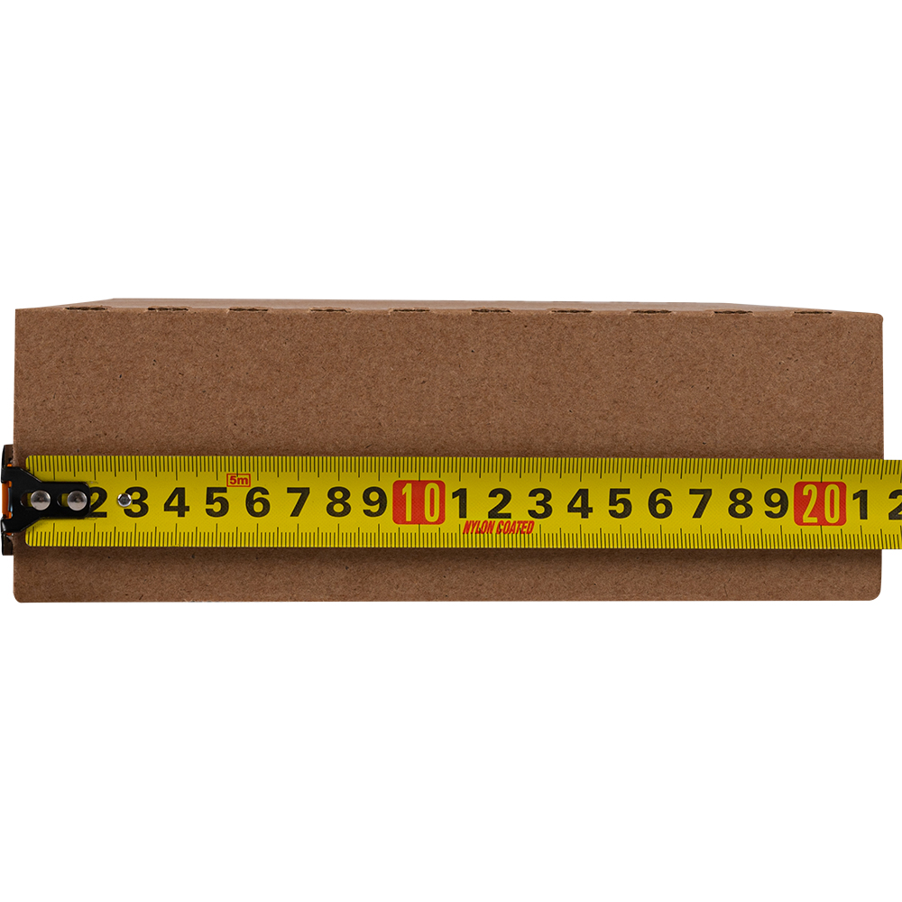 Короб №203 (премиум) бурого цвета, длиной 300 мм, шириной 210 мм и высотой 70 мм. Изготовлен из микрогофрокартона Е-22. Полезный объём — 4.4 л.