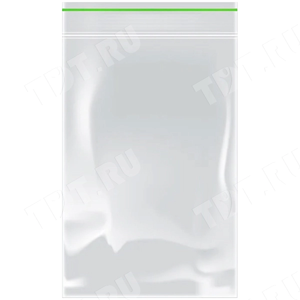 Пакеты Zip-Lock, прозрачного цвета с зеленой полосой, длиной 120 мм, шириной 80 мм, толщиной 23-26 мкм, в упаковке по 100 штук. Материал – полиэтилен высокого давления (ПВД). Производятся в Китае.