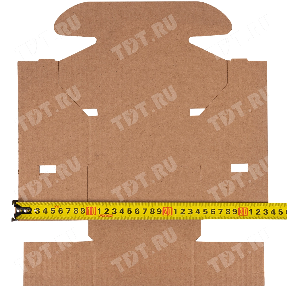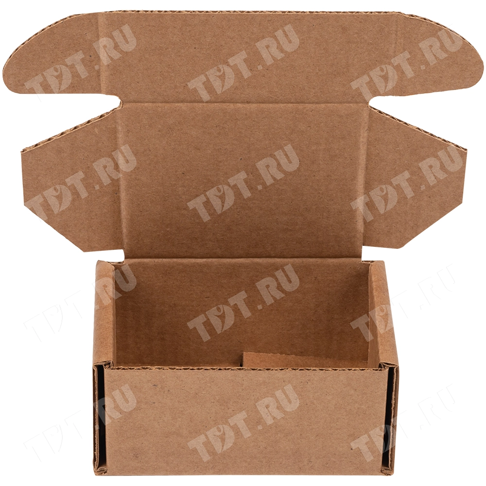 Коробка №161 бурого цвета, длиной 120 мм, шириной 90 мм и высотой 65 мм. Изготовлен из гофрокартона Т-23 В. Полезный объём — 0.7 л.