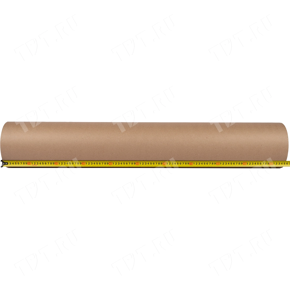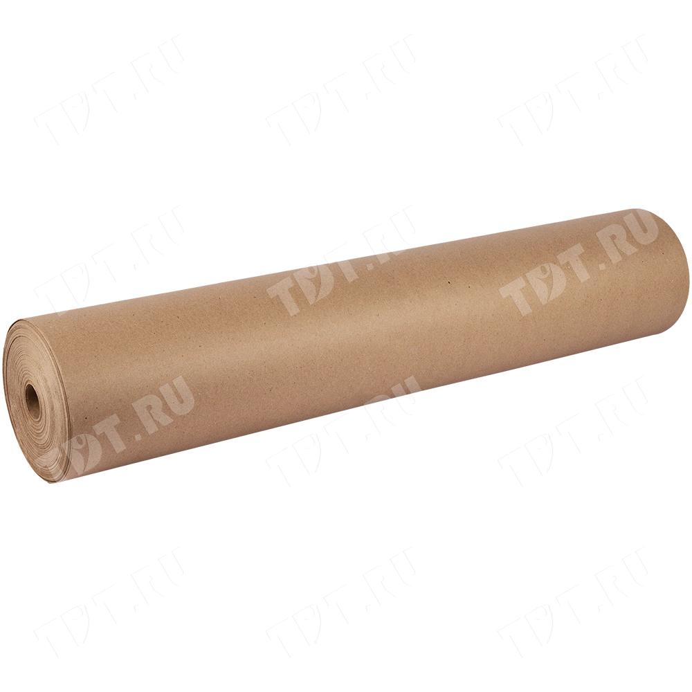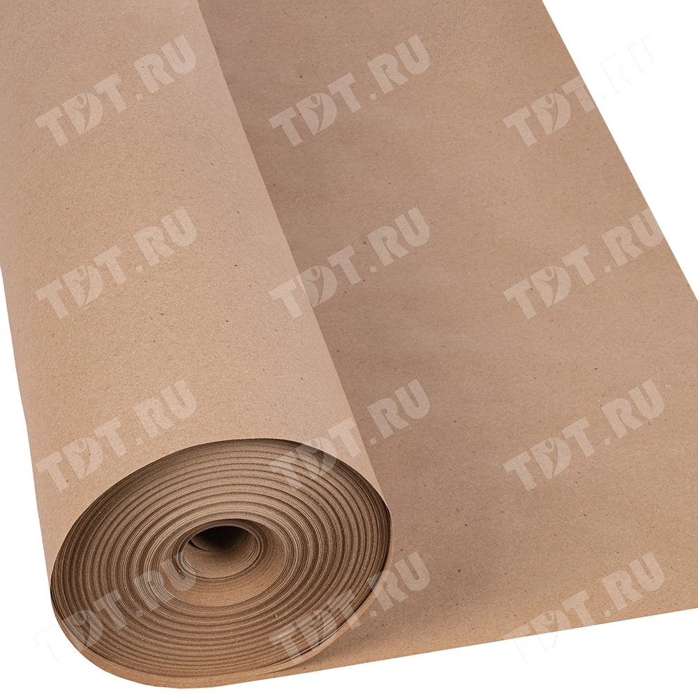 Оберточная крафт бумага в рулоне бурого цвета, шириной 1.05 м, намоткой 150 м, плотностью 80 г/м². Экологически чистый упаковочный материал из вторсырья. Производится в России.