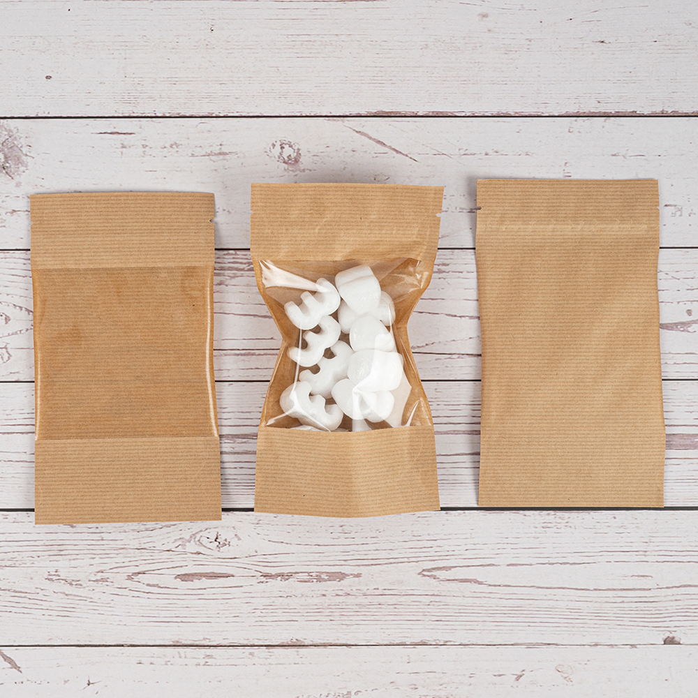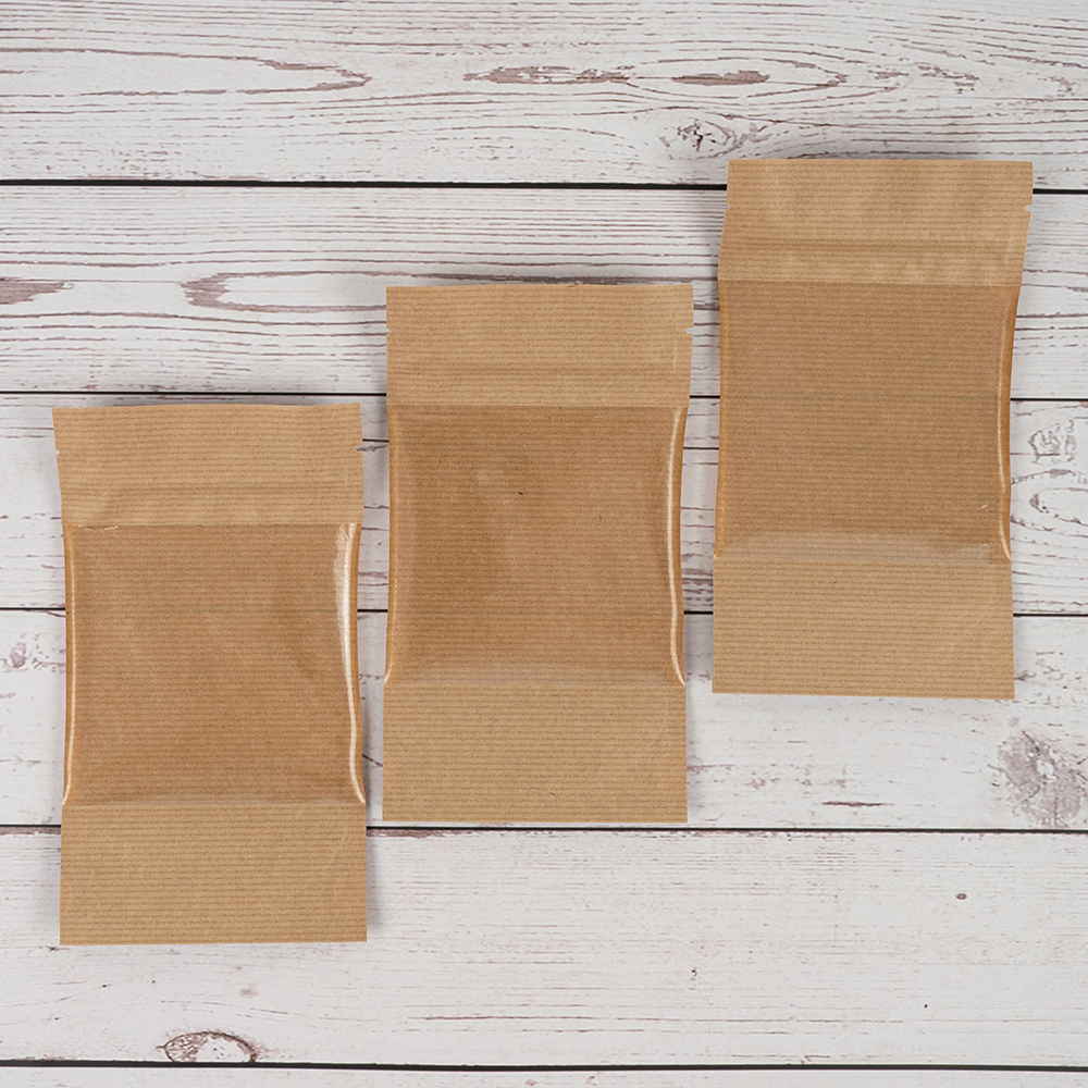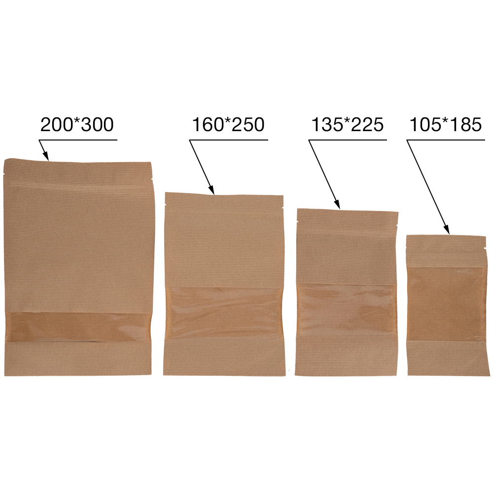 Крафт дой-пак с zip lock, прямоугольное окно 10 см, 10.5*6*18.5 см, 50 шт.
