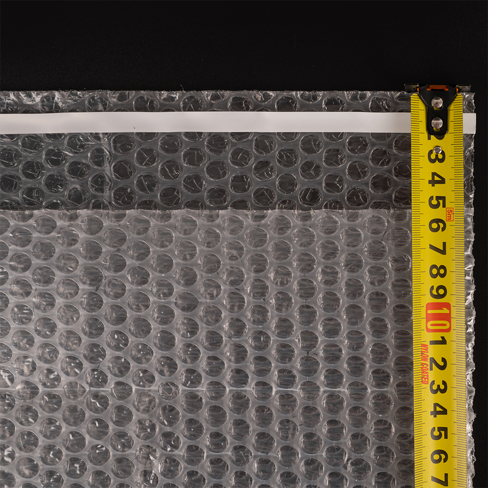 Прозрачный трехслойный воздушно-пузырчатый пакет длиной 20 см, шириной 20 см, с клеевым клапаном 5 см, диаметром пузырька 10 мм, плотностью 60 г/м². Изготовлен из полиэтилена. Производится в России компанией Бета-Куверт.