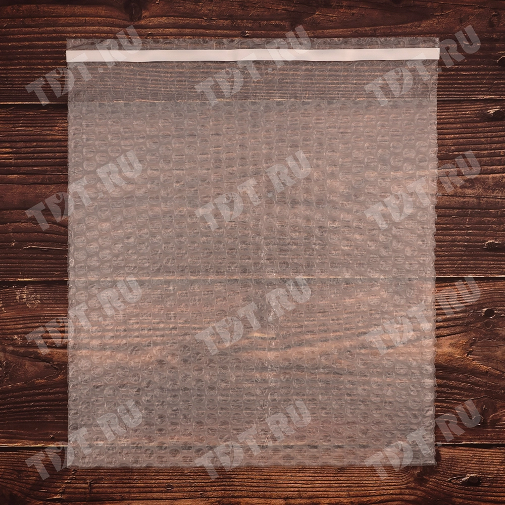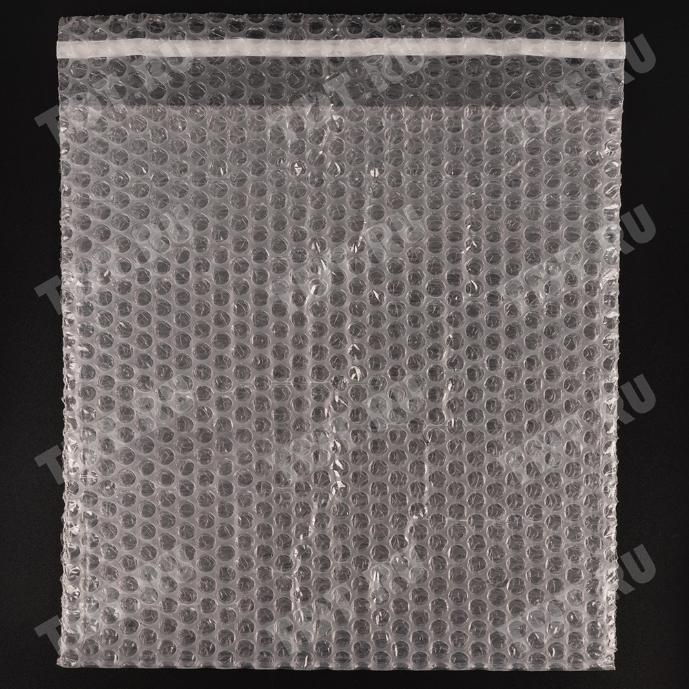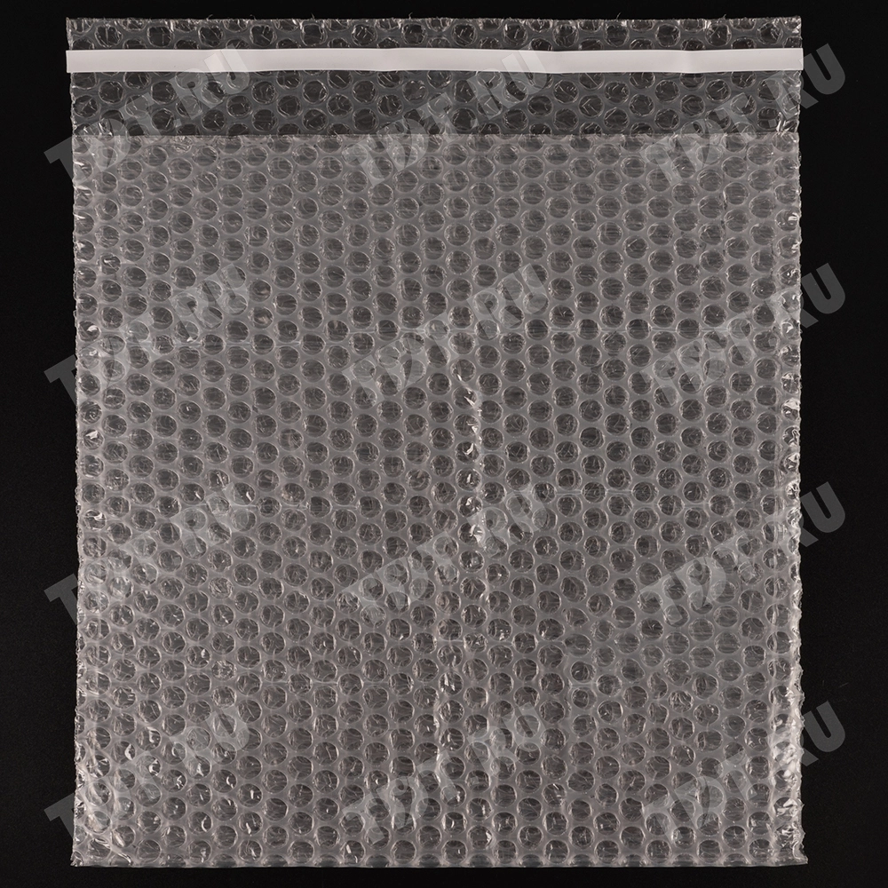 Прозрачный трехслойный воздушно-пузырчатый пакет длиной 40 см, шириной 40 см, с клеевым клапаном 5 см, диаметром пузырька 10 мм, плотностью 60 г/м². Изготовлен из полиэтилена. Производится в России компанией Бета-Куверт.