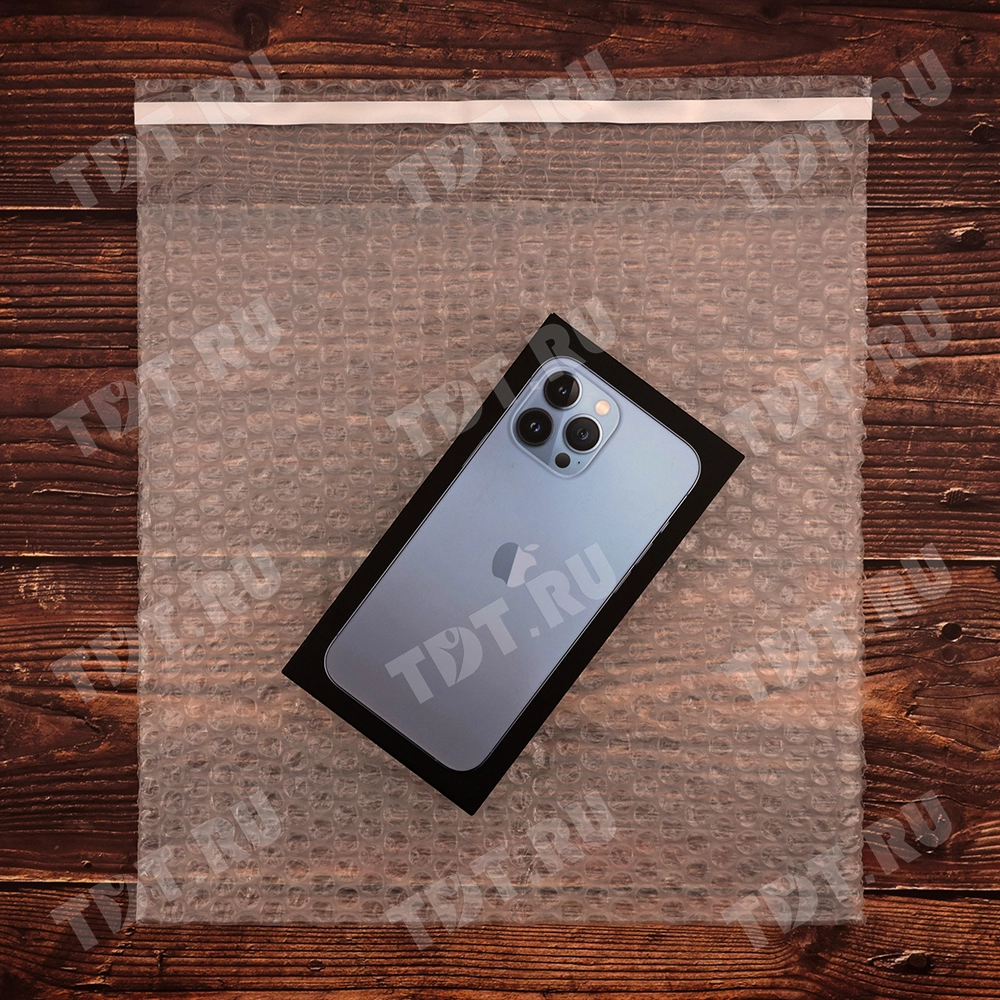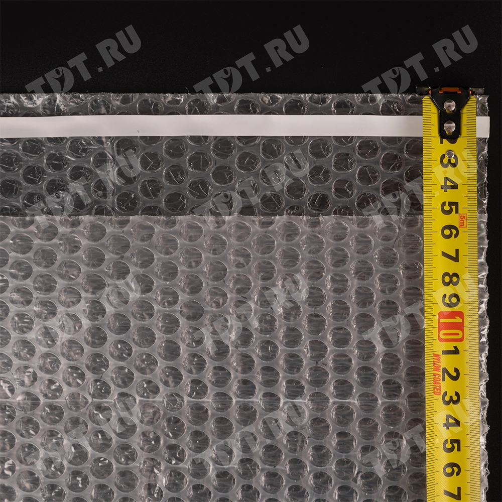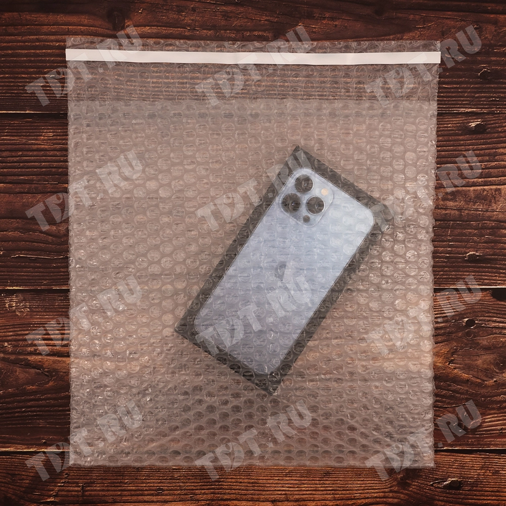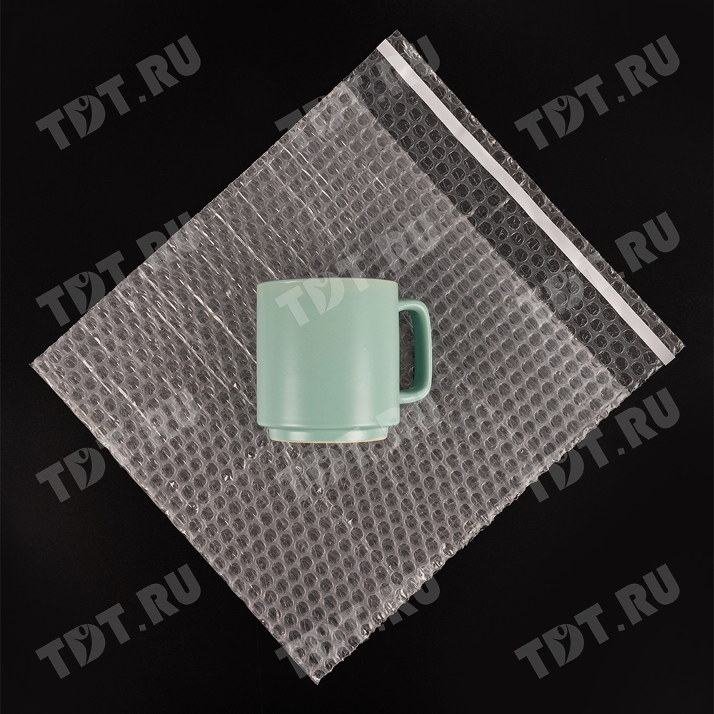 Прозрачный трехслойный воздушно-пузырчатый пакет длиной 40 см, шириной 40 см, с клеевым клапаном 5 см, диаметром пузырька 10 мм, плотностью 60 г/м². Изготовлен из полиэтилена. Производится в России компанией Бета-Куверт.