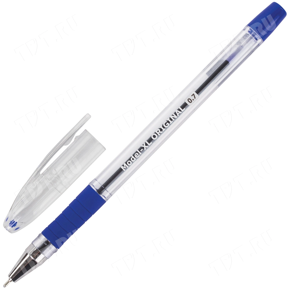 Шариковая ручка с грипом BRAUBERG Model-XL ORIGINAL, синие чернила на масляной основе, узел 0.7 мм, линия письма 0.35 мм. Производится в Китае.