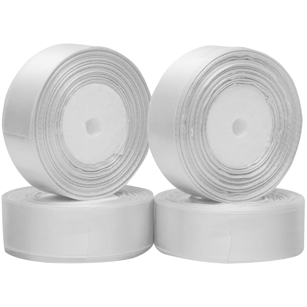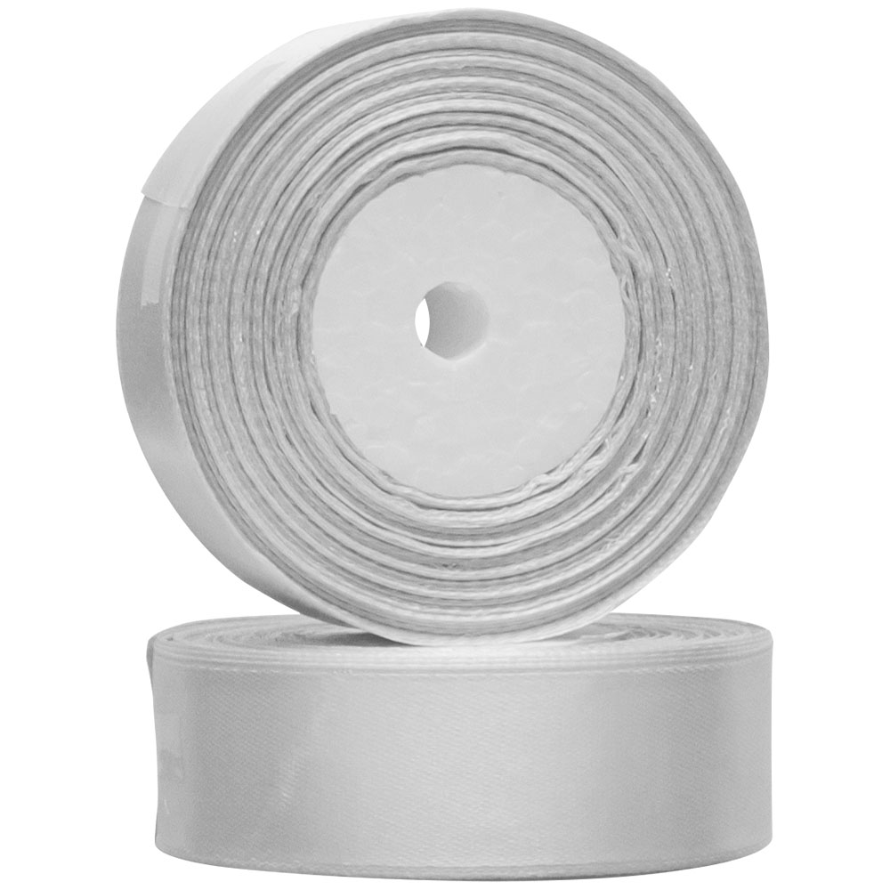 Атласная лента белого цвета, шириной 20 мм, намоткой 25 метров. Шелковые ленты предназначены для отделки и декорирования изделий из ткани, оформления праздничных мероприятий, упаковки подарков и цветов.