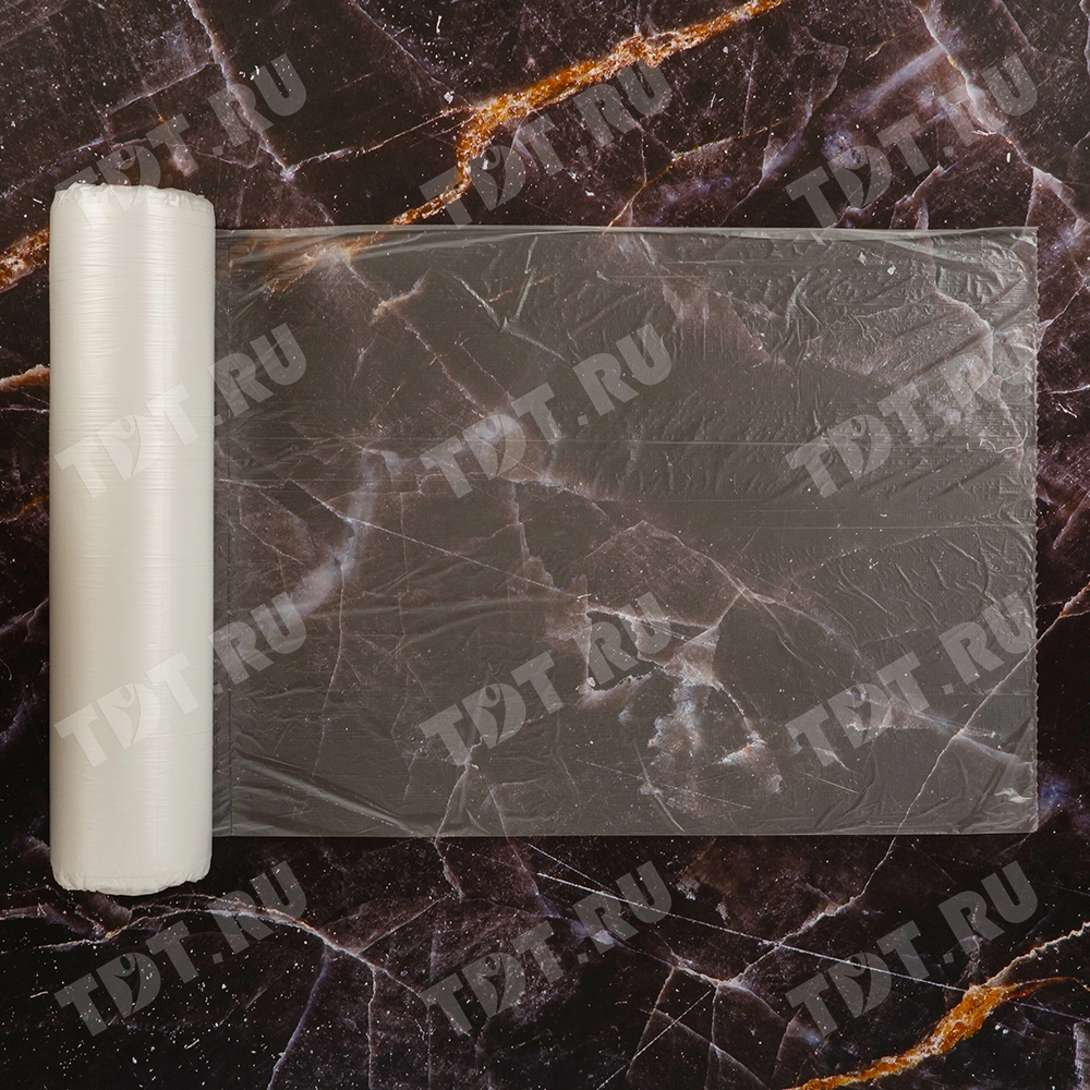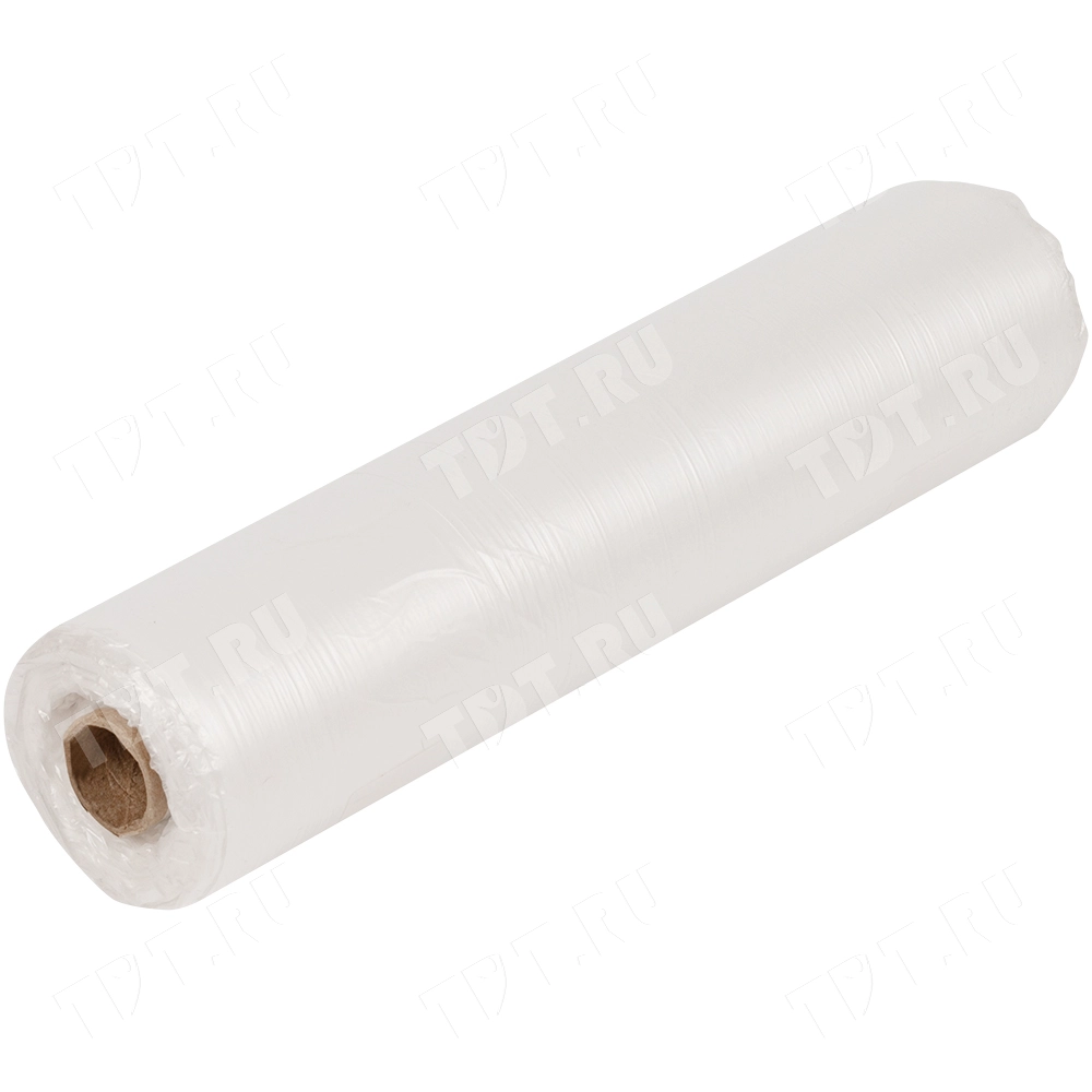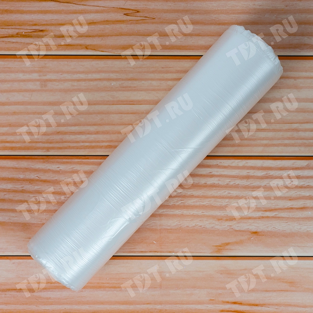 Прозрачные фасовочные пакеты ПНД в рулоне на втулке длиной 35 см, шириной 25 см, толщиной 8 мкм, в рулоне по 400 штук. Материал – полиэтилен низкого давления. Производятся в России.