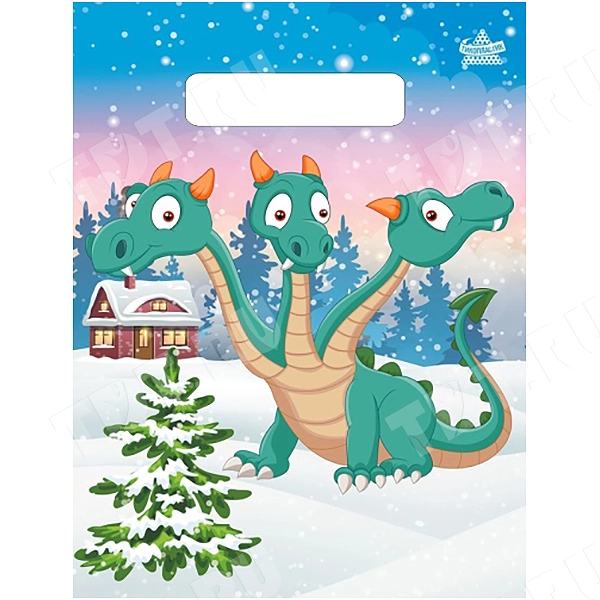 Пакет ПЭ с вырубной неусиленной ручкой «Веселый Горыныч», 19*25 см, 30 мкм, 100 шт./уп.