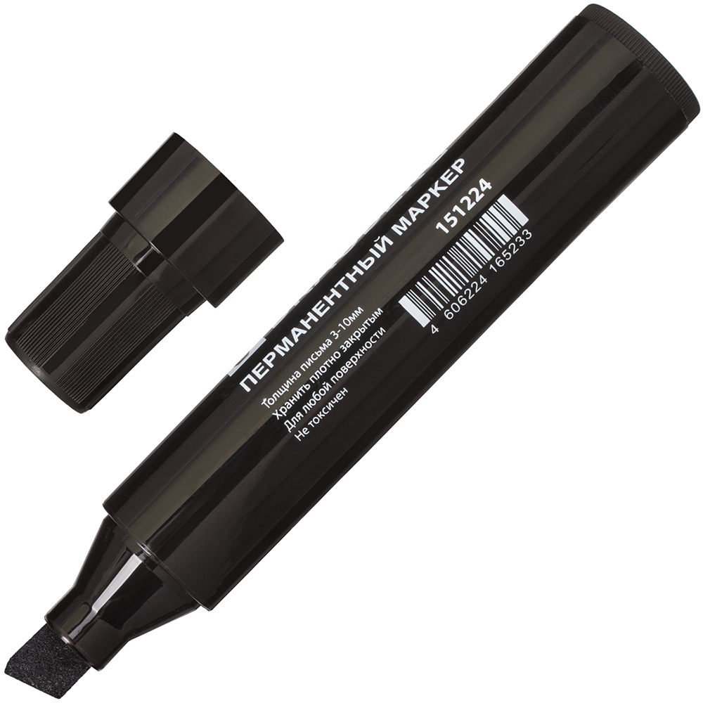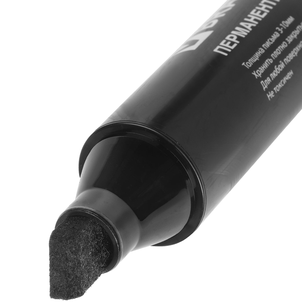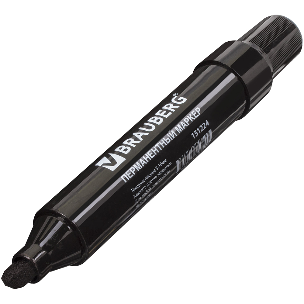 Маркер перманентный BRAUBERG «JUMBO», спиртовой, минимальной толщиной пера 3 мм, максимальной – 10 мм, черного цвета, скошенный наконечник, код производителя 151224. Производится в Китае.