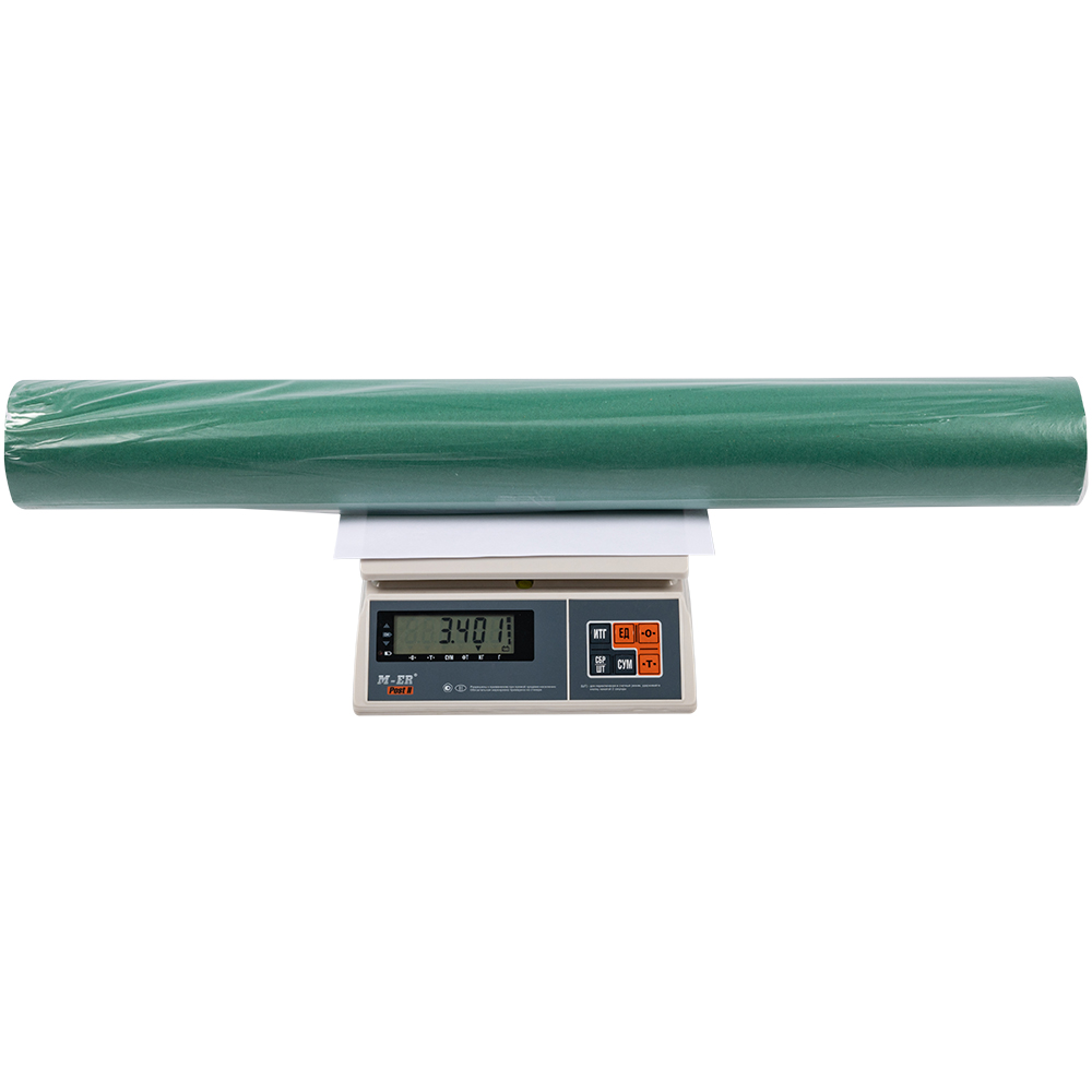 Оберточная крафт бумага в рулоне зеленого цвета, шириной 84 см, намоткой 40 м, плотностью 100 г/м². Экологически чистый упаковочный материал. Производится в России.