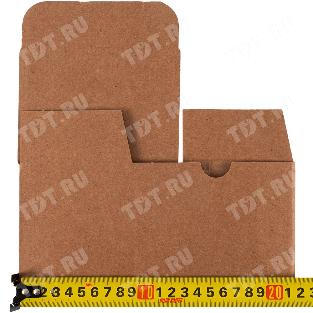 Самосборный короб №241 бурого цвета, длиной 125 мм, шириной 90 мм и высотой 110 мм. Изготовлена из микрогофрокартона Т-22 Е. Полезный объём — 1.24 л.