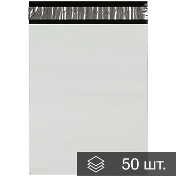 Курьер-пакет белый без печати, без кармана, 190*240+40 мм, 50 мкм, 50 шт.