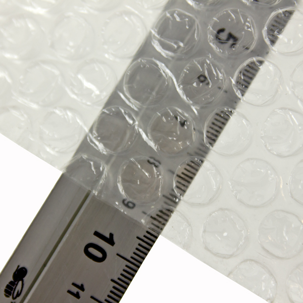 Прозрачная двухслойная воздушно-пузырчатая пленка «Оптима», намоткой 50 м, шириной рулона 1.2 м, диаметром пузырька 10 мм, плотностью 35 г/м². Изготовлена из полиэтилена. Производится в России.