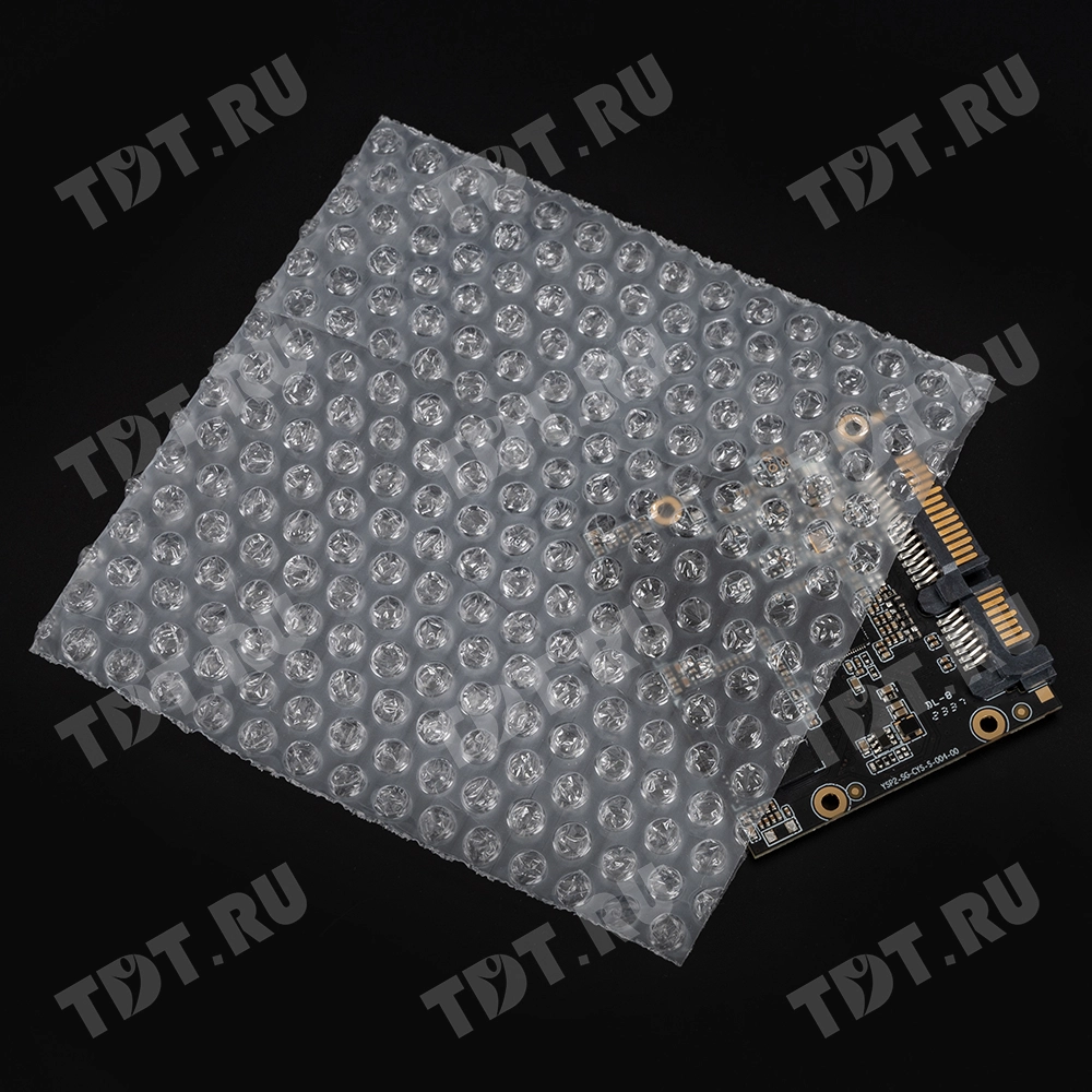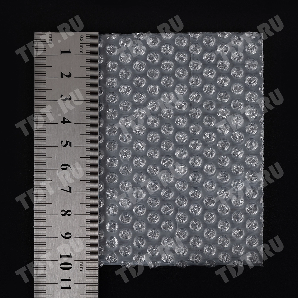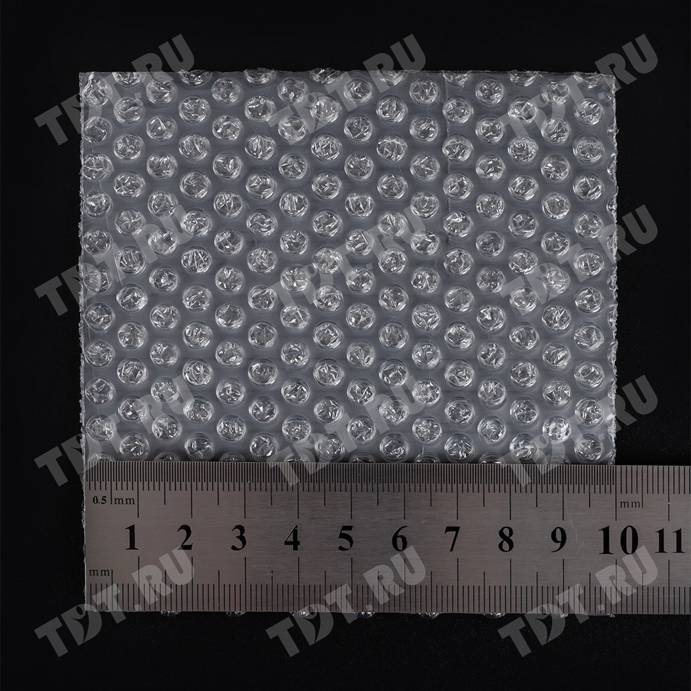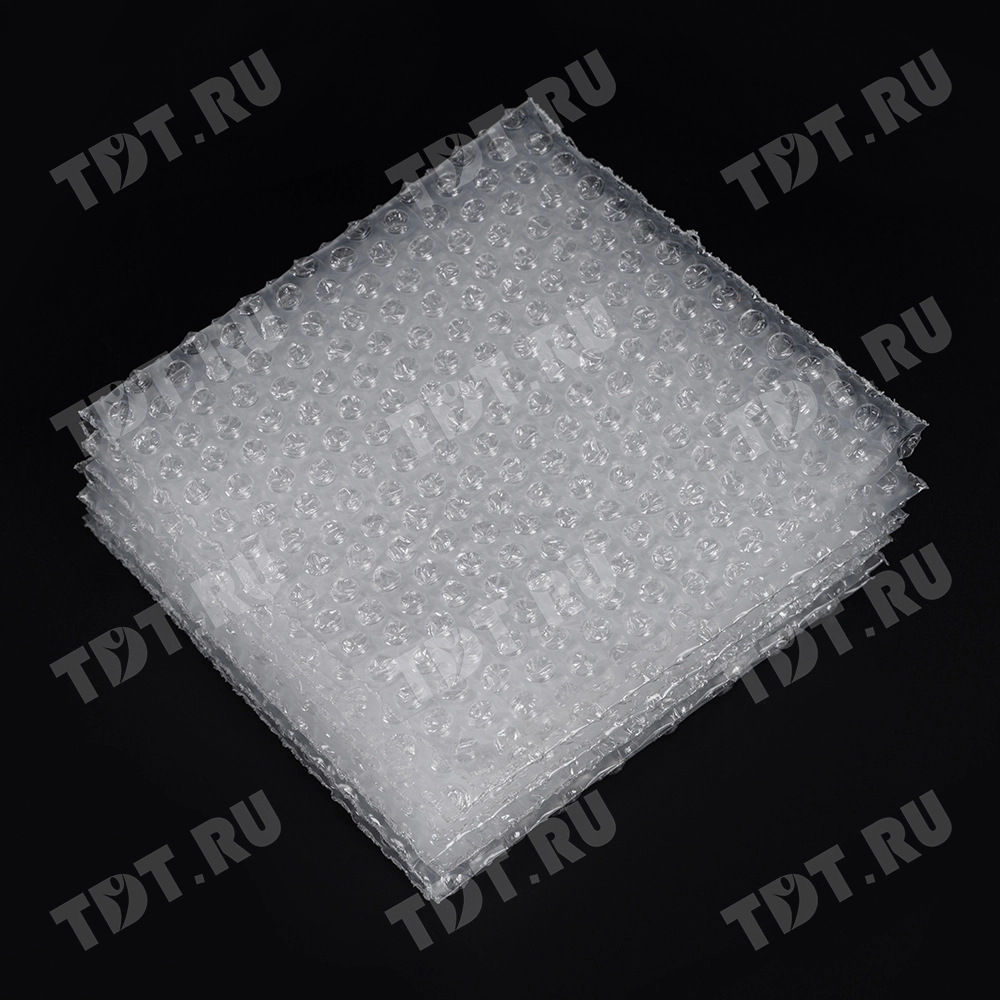 Прозрачные двухслойные воздушно-пузырчатые пакеты из пленки «МиниБабл», длиной 10 см, шириной 10 см, диаметром пузырька 5 мм, плотностью 25 г/м². В коробке 300 пакетов. Изготовлены из полиэтилена. Производится в России.
