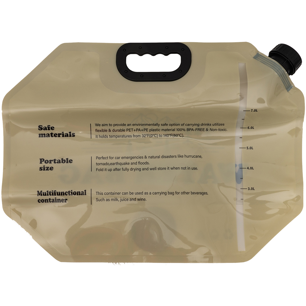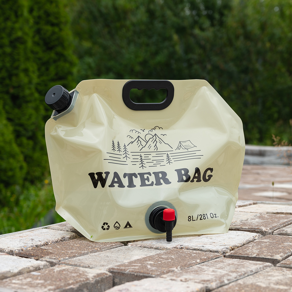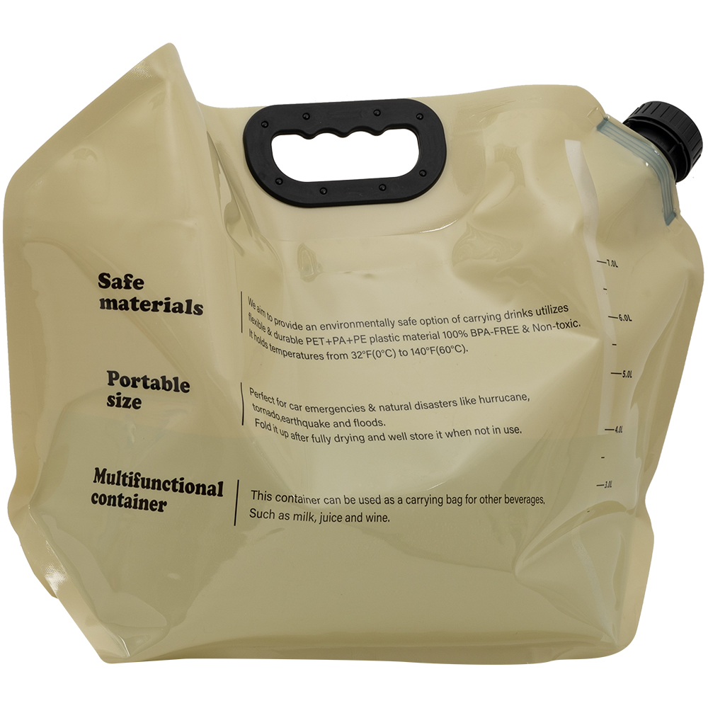 Сумка-канистра для хранения и переноски воды станет незаменимой помощницей для отдыха на природе, пикника, похода, поездки загород или на дачу. Складные компактные канистры — отличная альтернатива пустым 5-литровым бутылкам, занимающим половину коридора, балкона или багажника автомобиля. Сумка изготовлена из безопасного PET-G пластика и не имеет запаха. Состоит из трёх слоёв материала.
