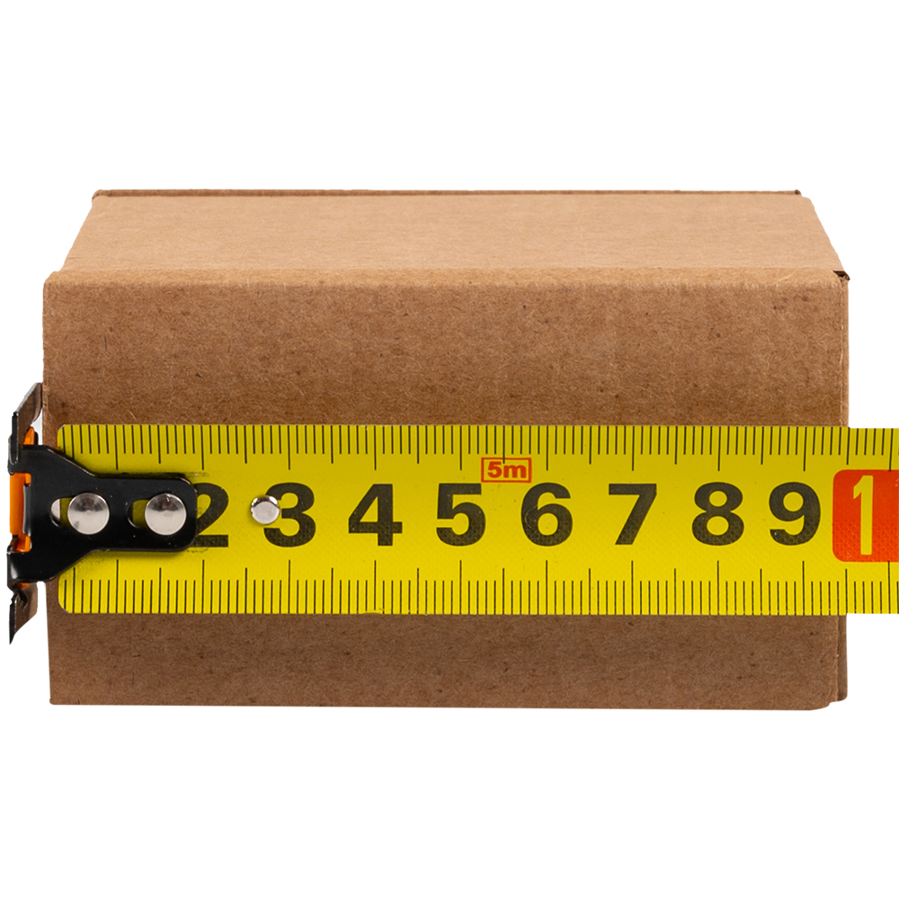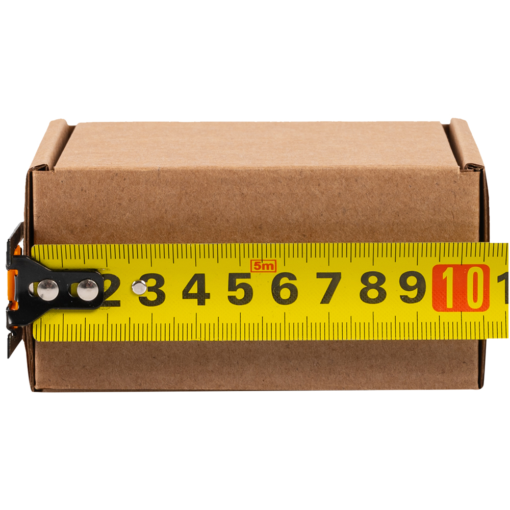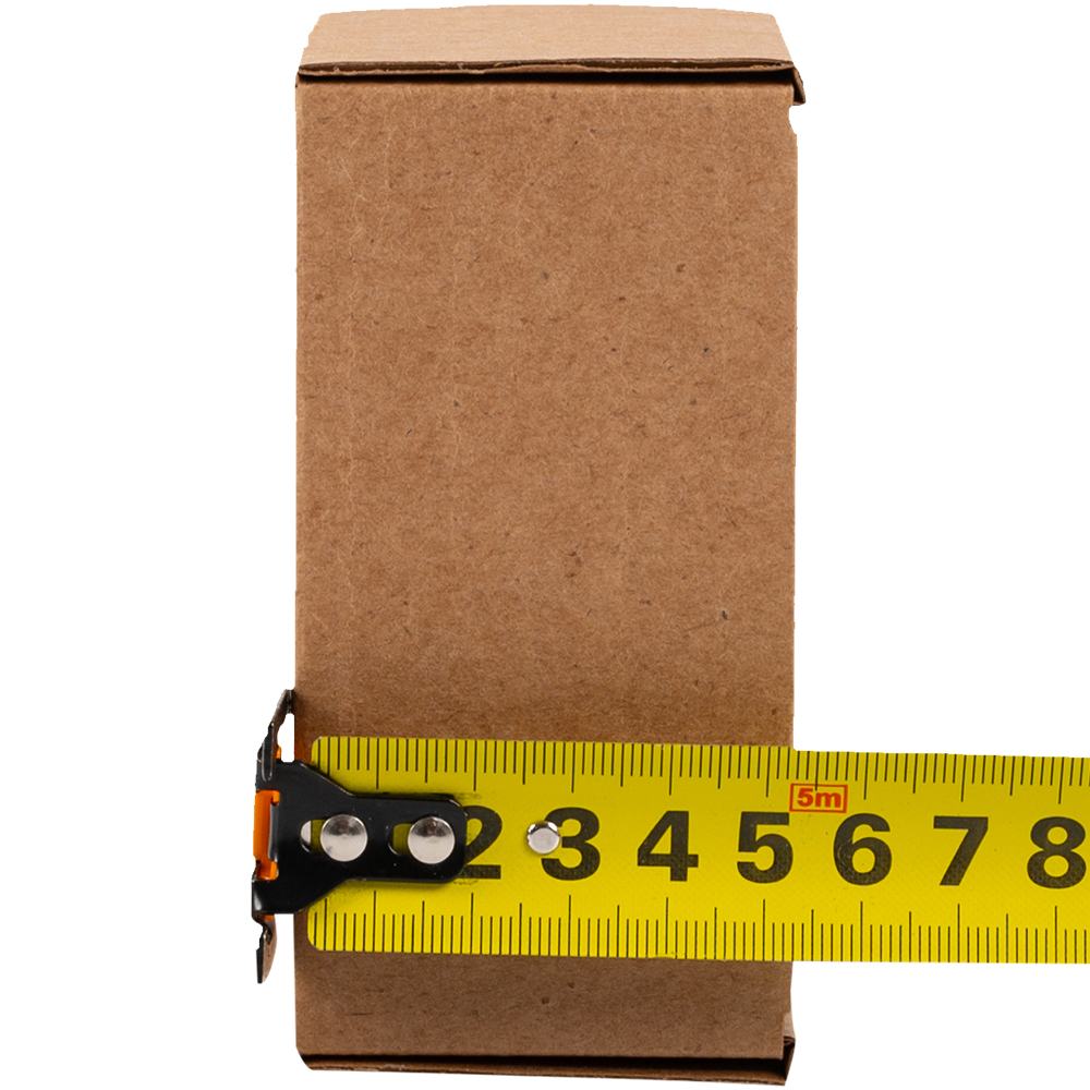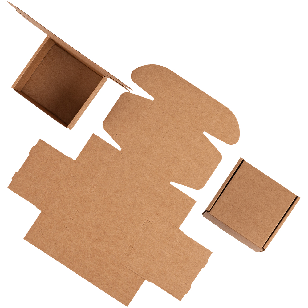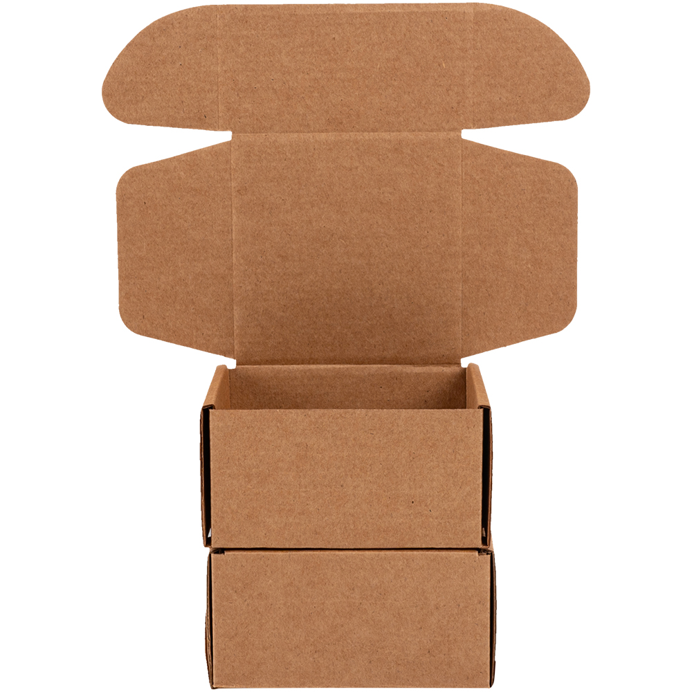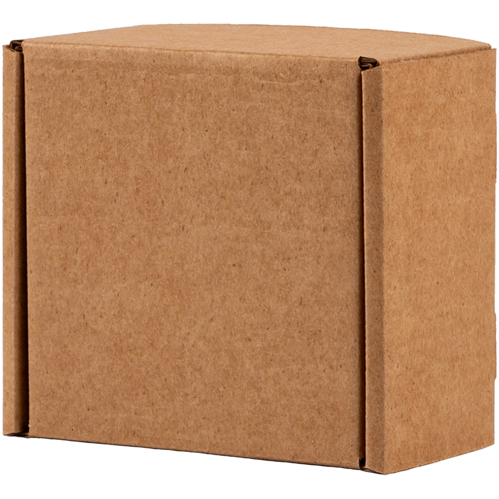 Самосборный короб №134 бурого цвета, длиной 90 мм, шириной 90 мм и высотой 50 мм. Изготовлен из гофрокартона Т-23 Е. Полезный объём — 0.41 л.