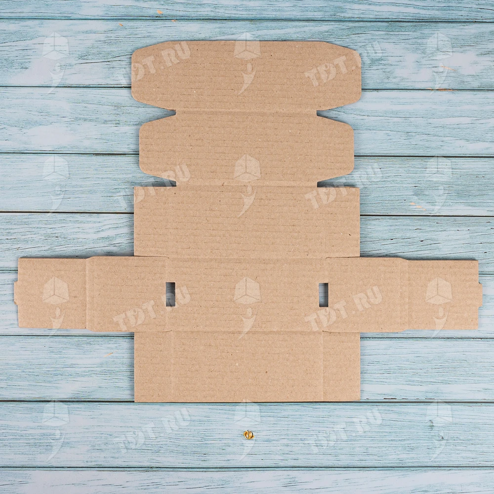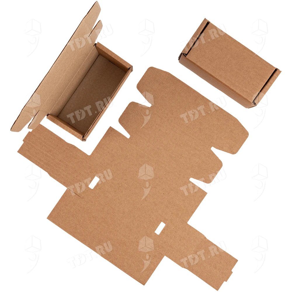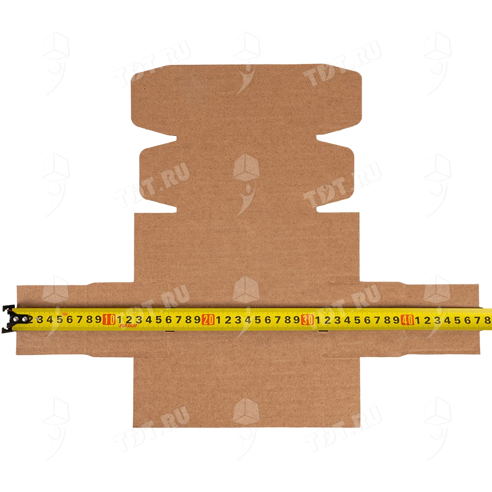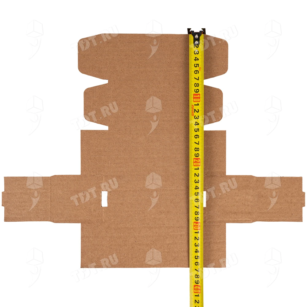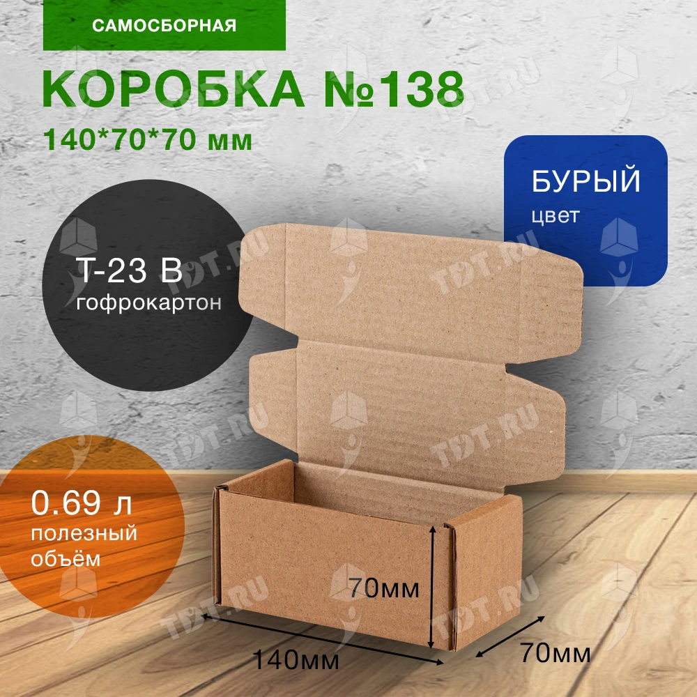 Самосборный короб №138 бурого цвета, длиной 140 мм, шириной 70 мм и высотой 70 мм. Изготовлен из гофрокартона Т-23 В. Полезный объём — 0.69 л.