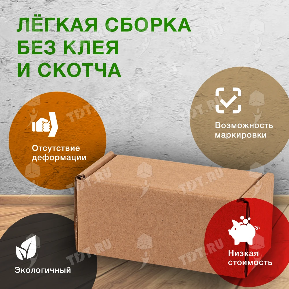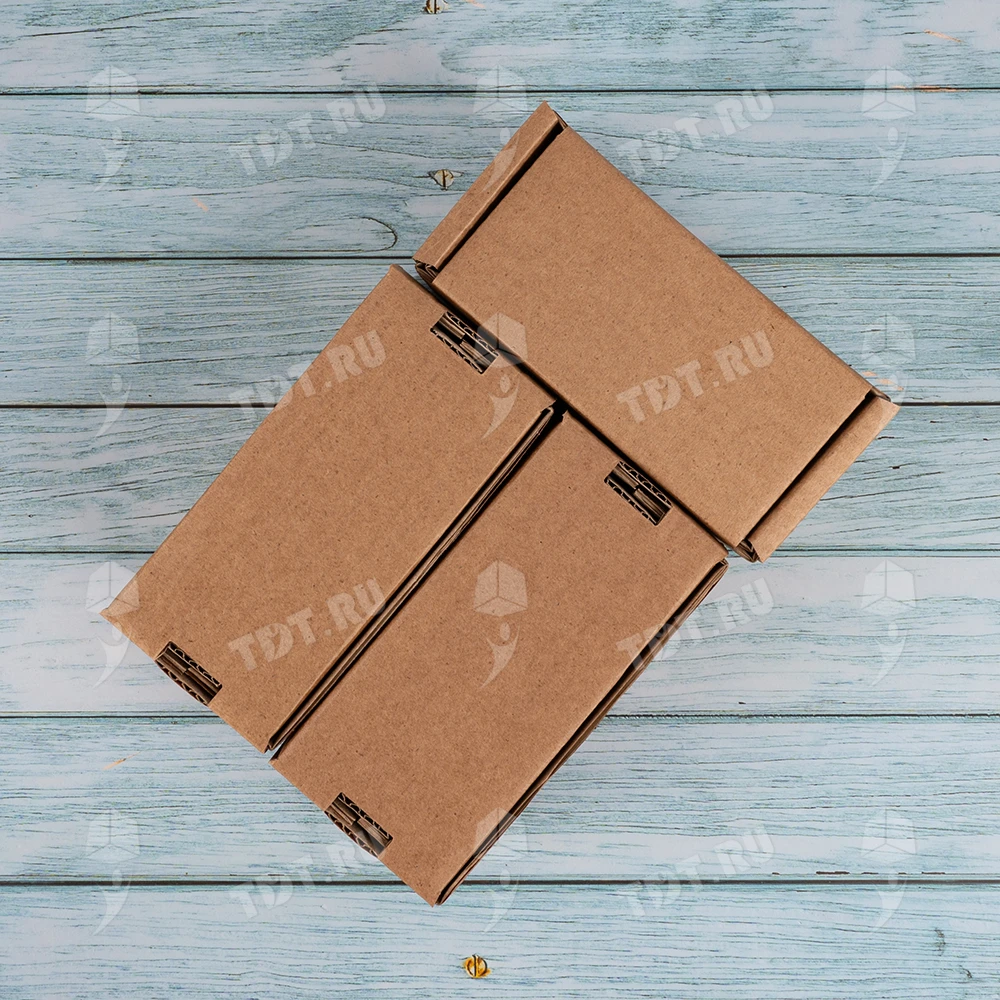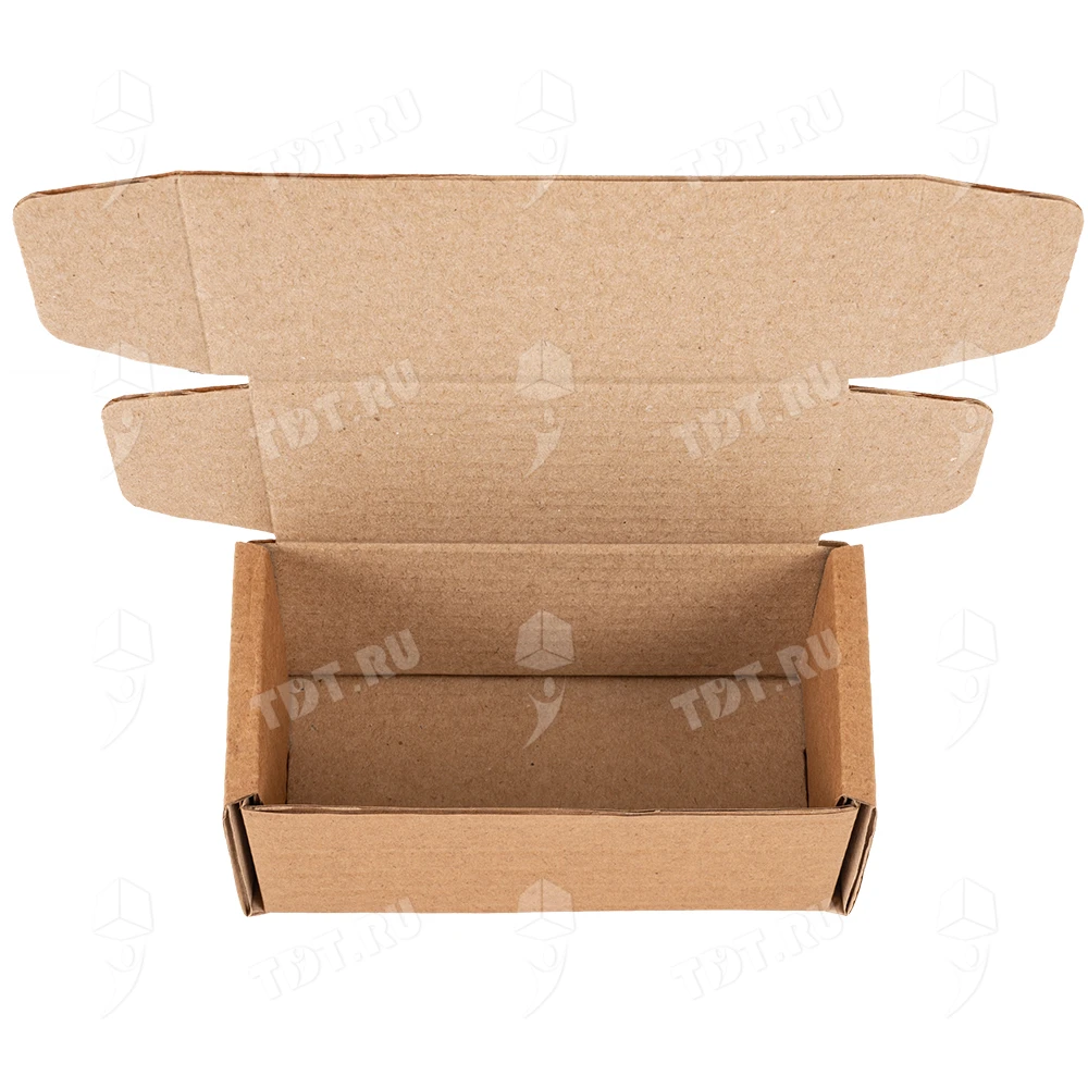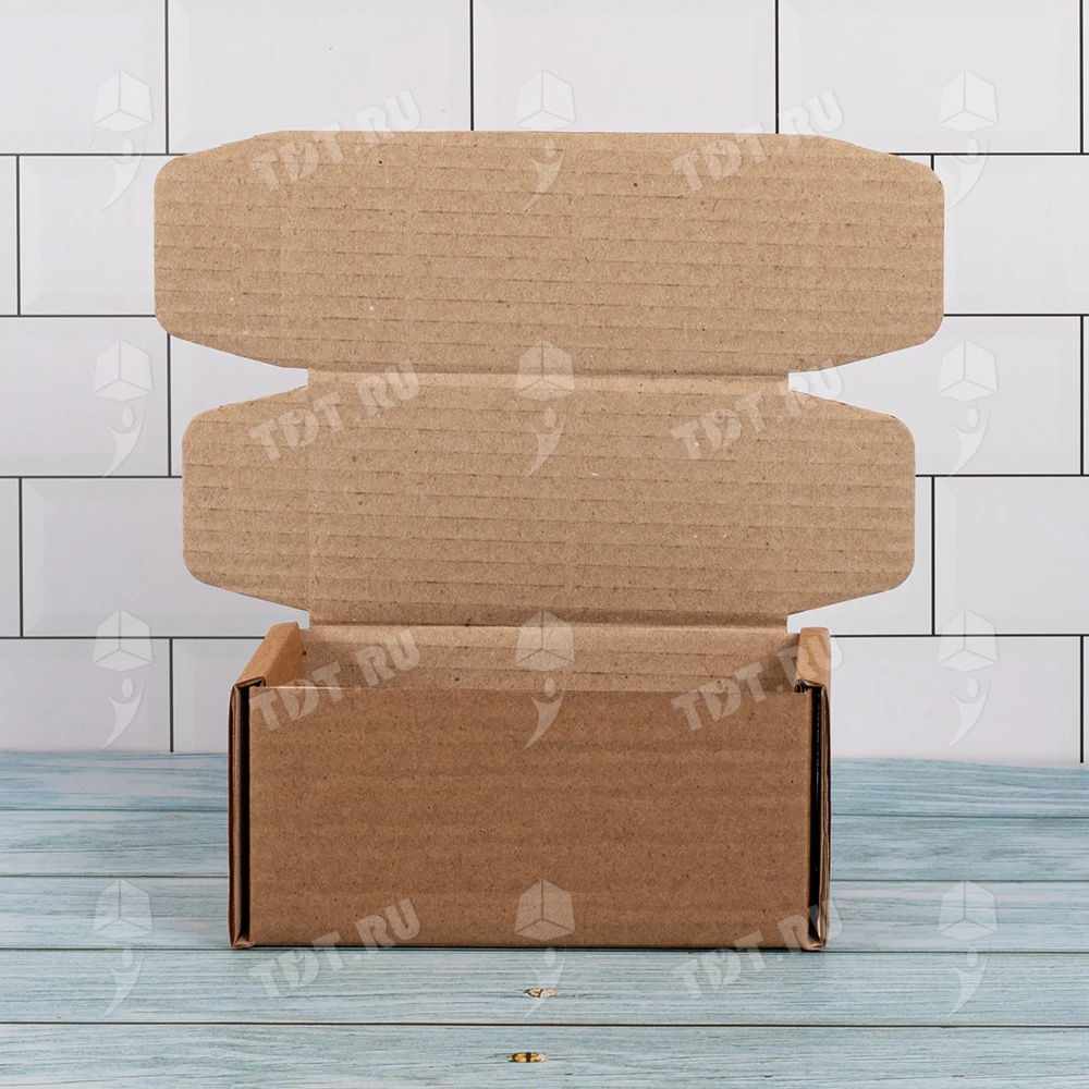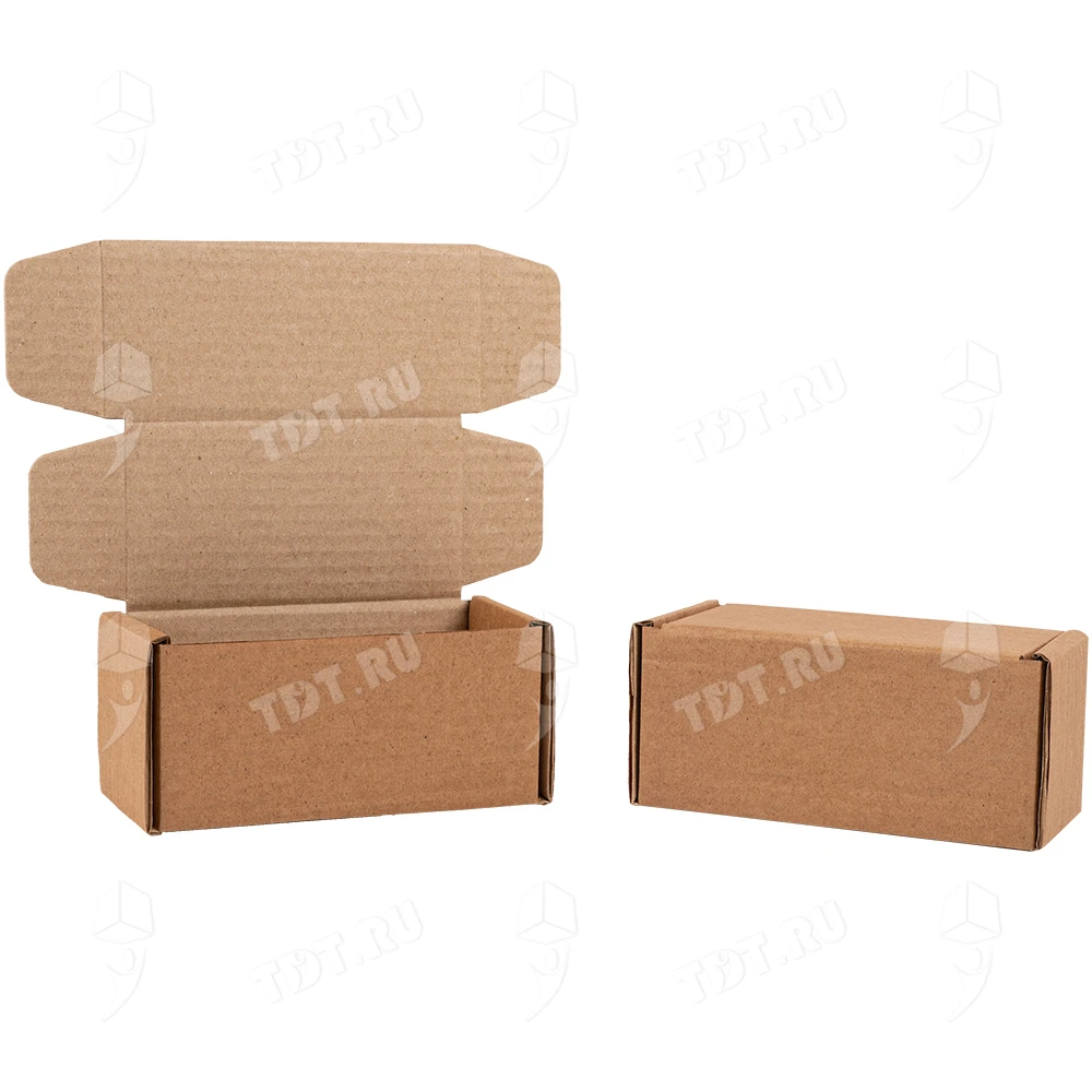 Самосборный короб №138 бурого цвета, длиной 140 мм, шириной 70 мм и высотой 70 мм. Изготовлен из гофрокартона Т-23 В. Полезный объём — 0.69 л.