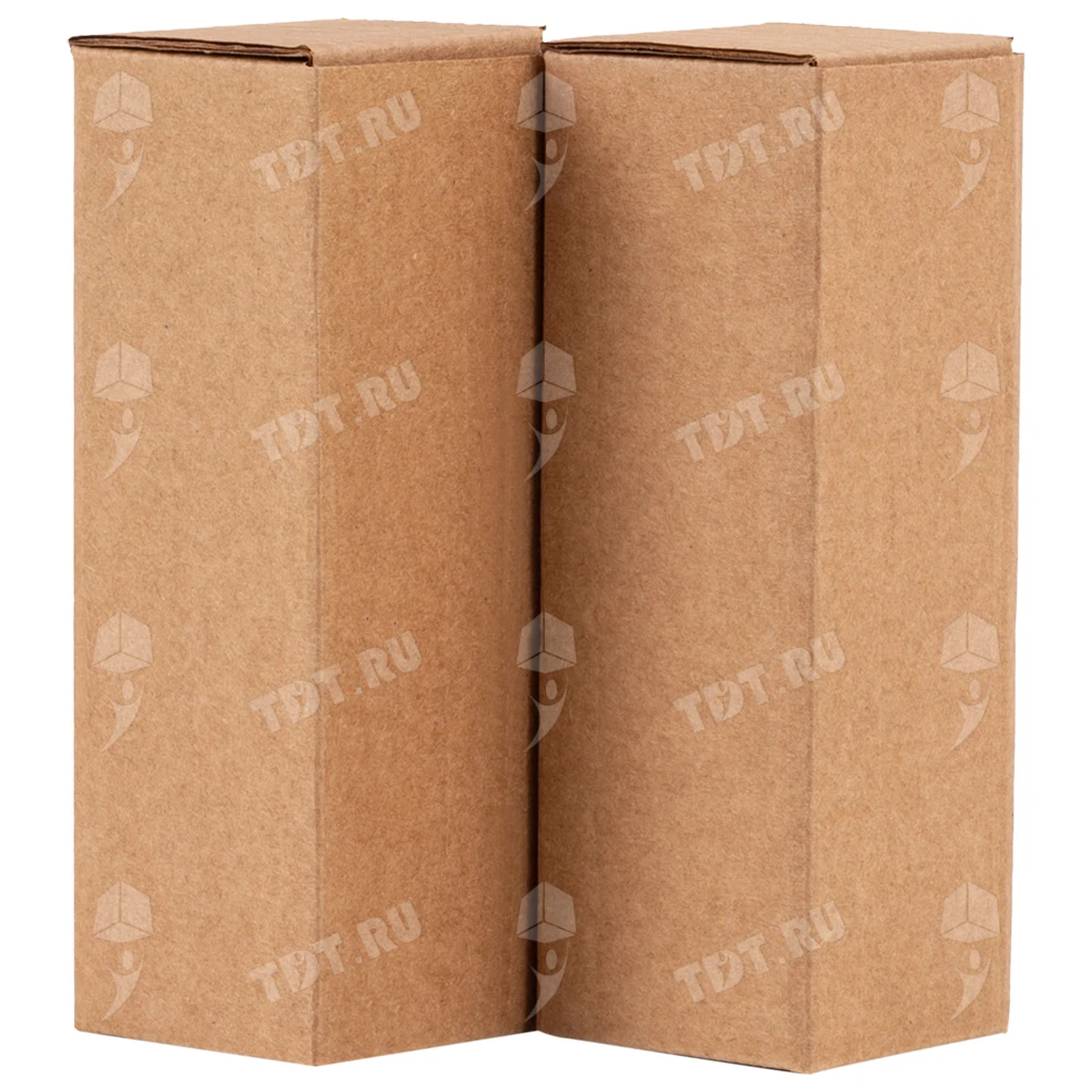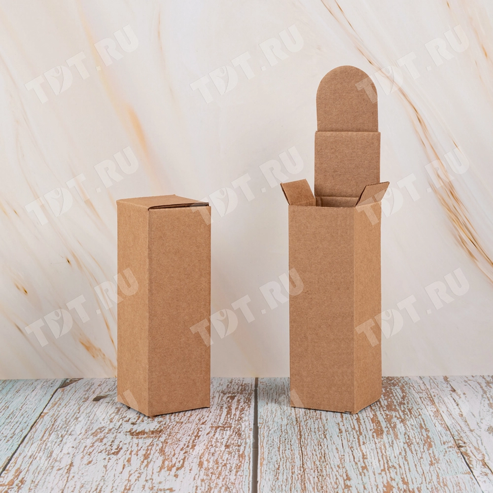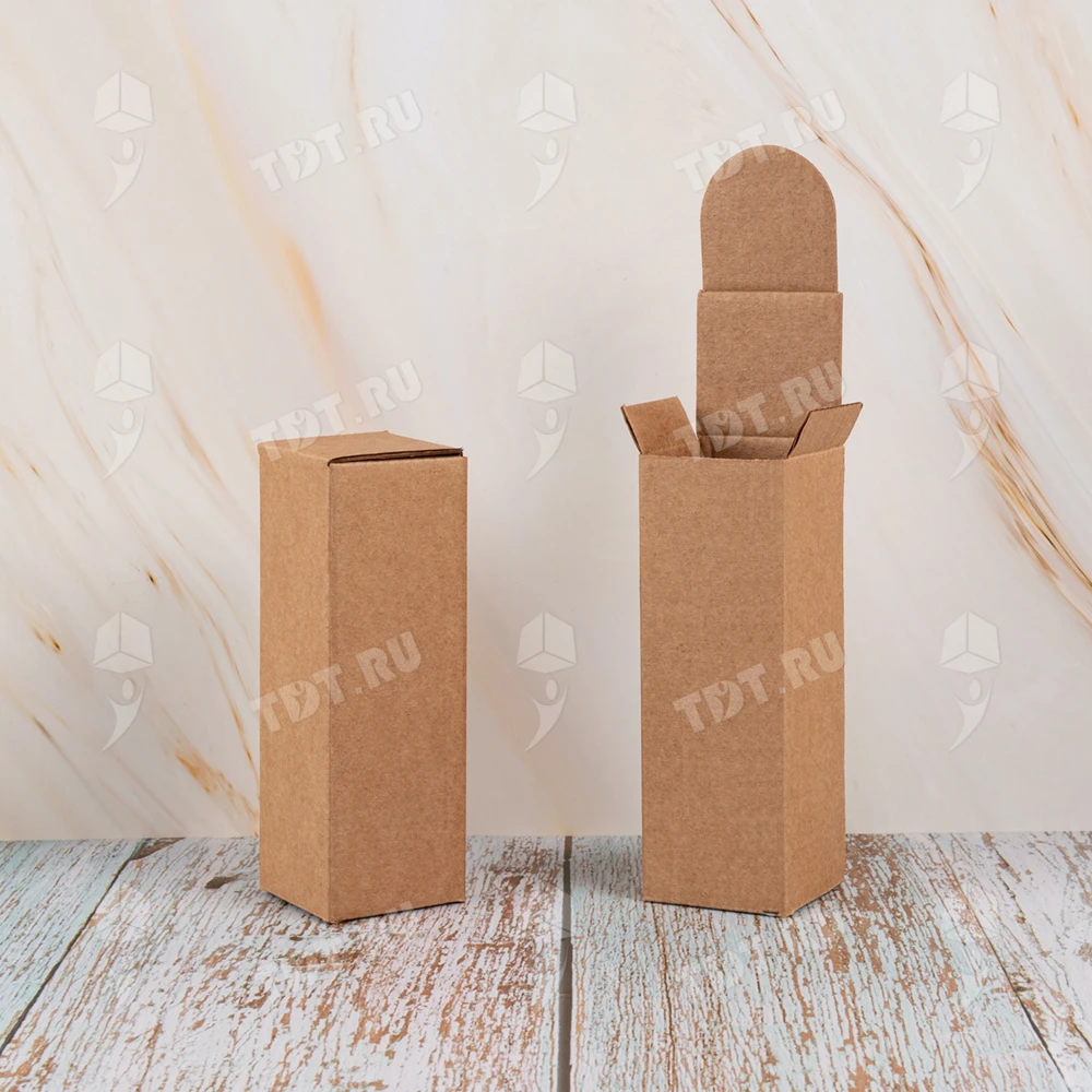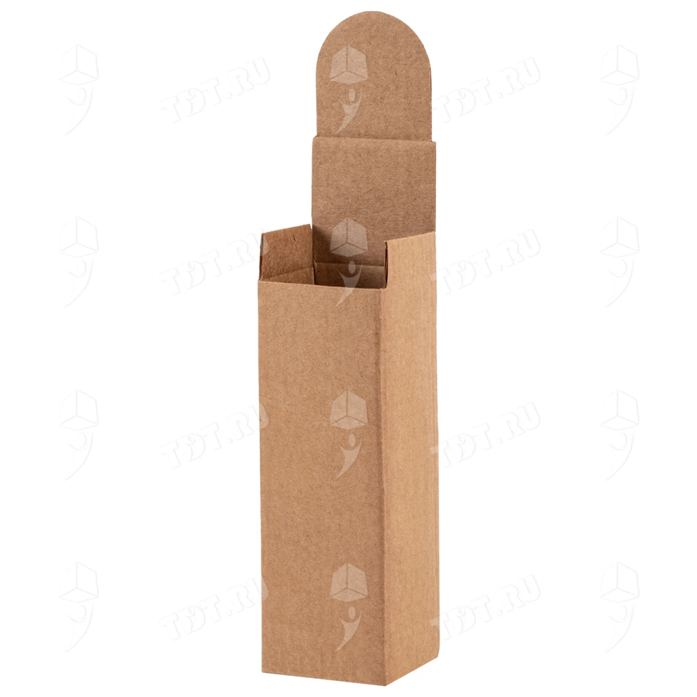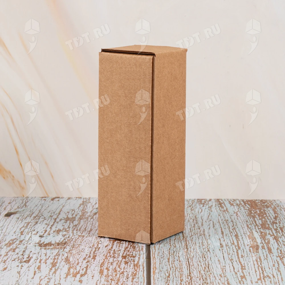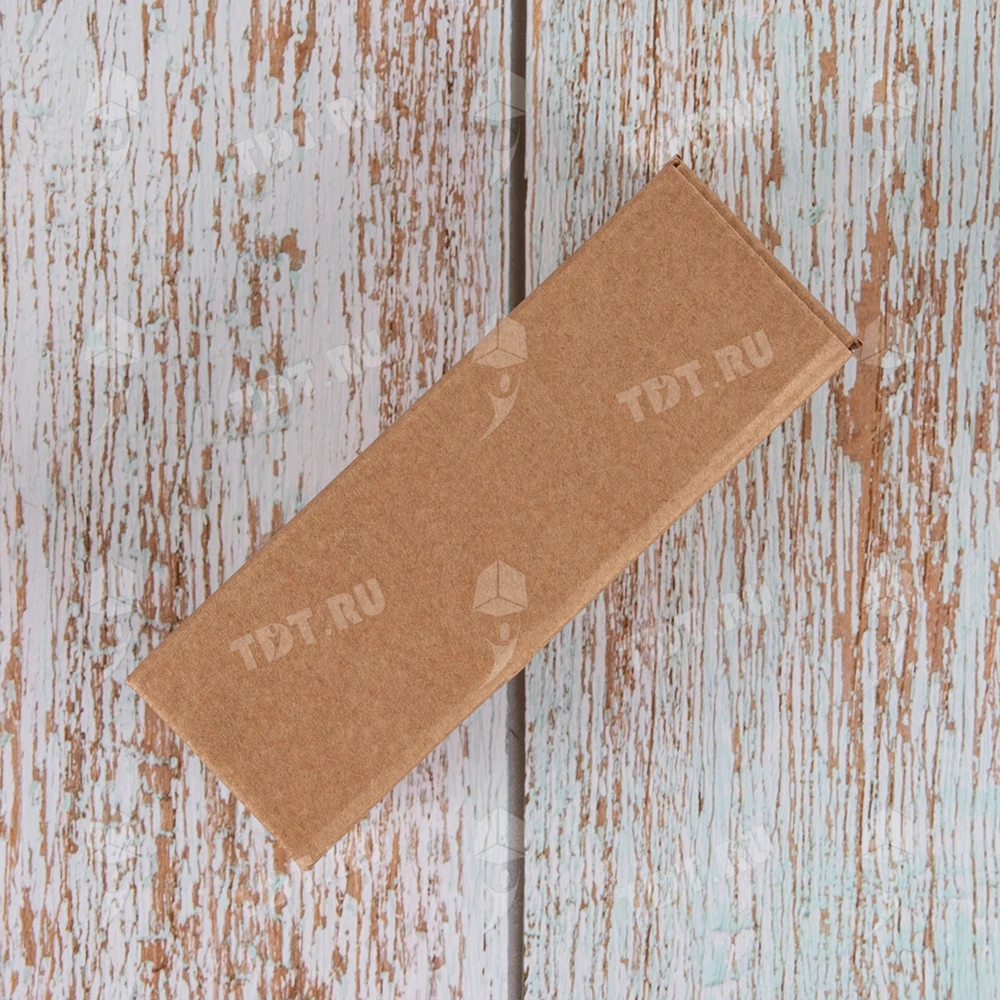 Самосборный короб №139 «Ласточкин хвост» бурого цвета, длиной 40 мм, шириной 40 мм и высотой 120 мм. Изготовлен из гофрокартона Т-23 Е. Полезный объём — 0.19 л.