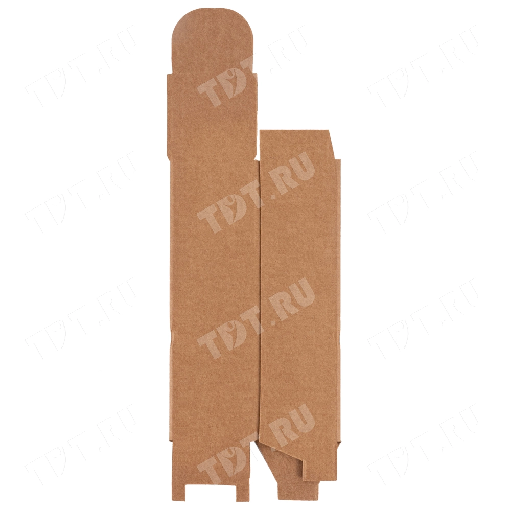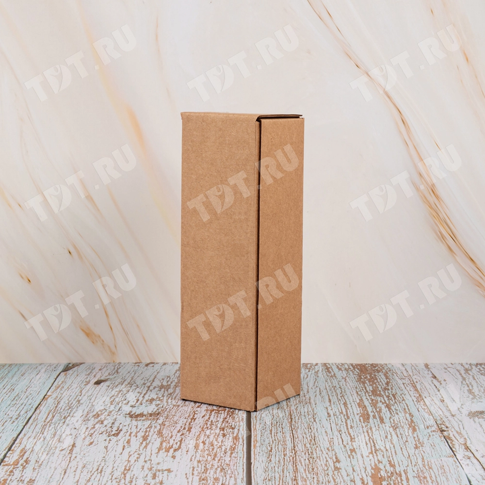 Самосборный короб №153 «Ласточкин хвост» бурого цвета, длиной 80 мм, шириной 80 мм и высотой 220 мм. Изготовлен из гофрокартона Т-23 Е. Полезный объём — 1.41 л.