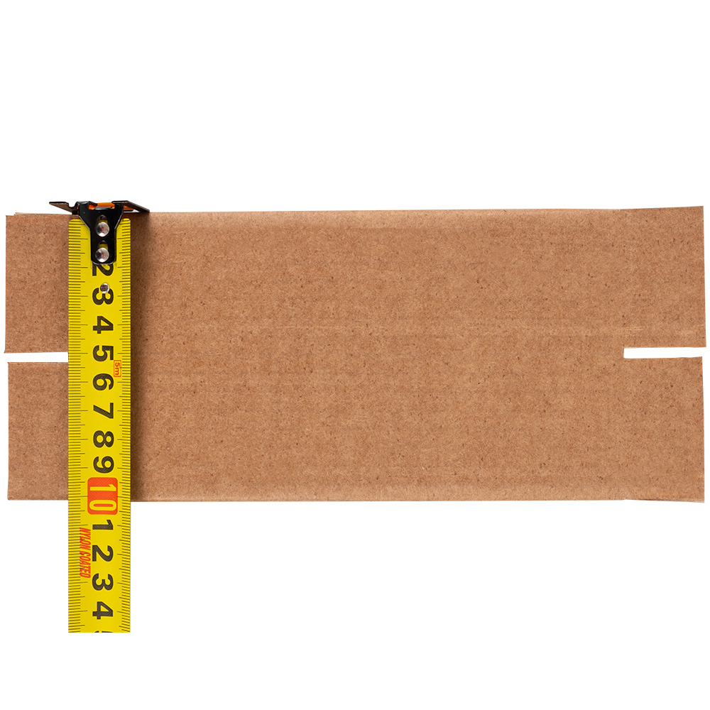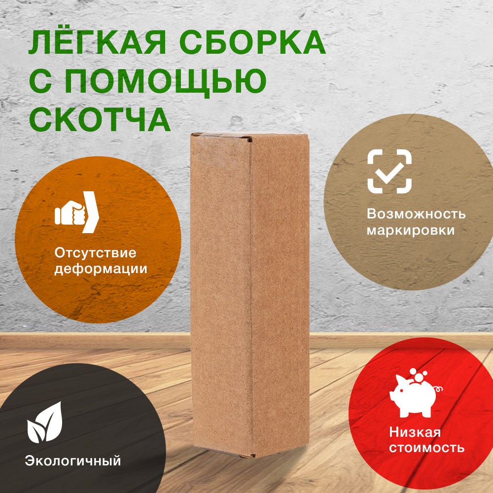 Короб №159 бурого цвета, длиной 50 мм, шириной 50 мм и высотой 190 мм. Изготовлен из трехслойного картона марки Т-23 В. Полезный объём — 0.48 л.
