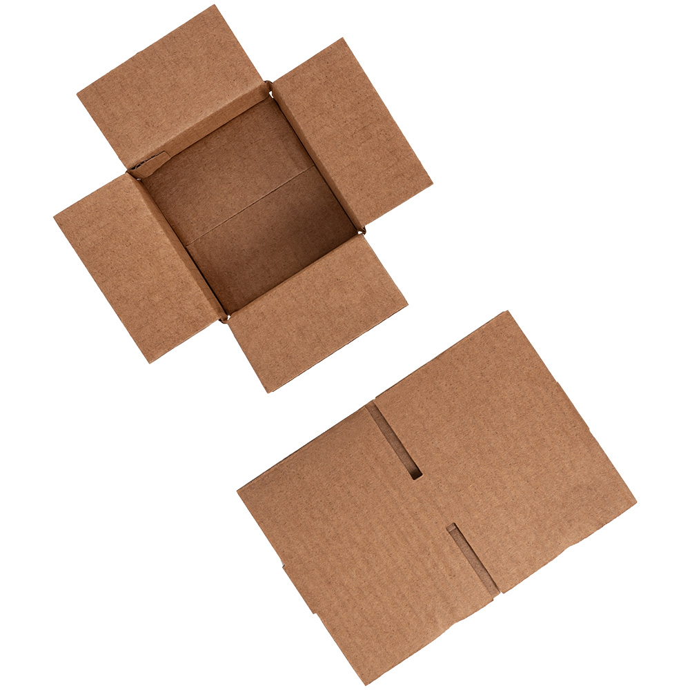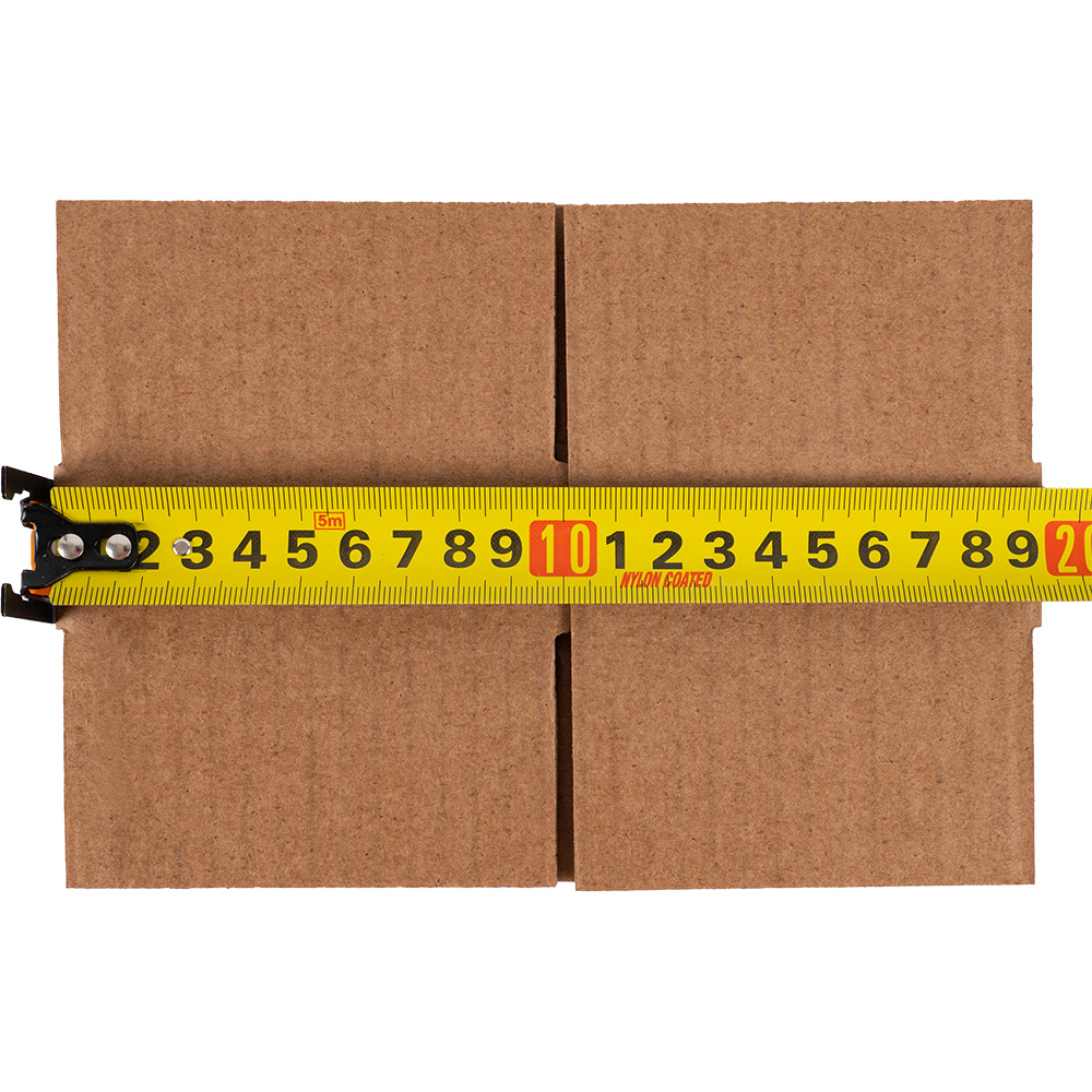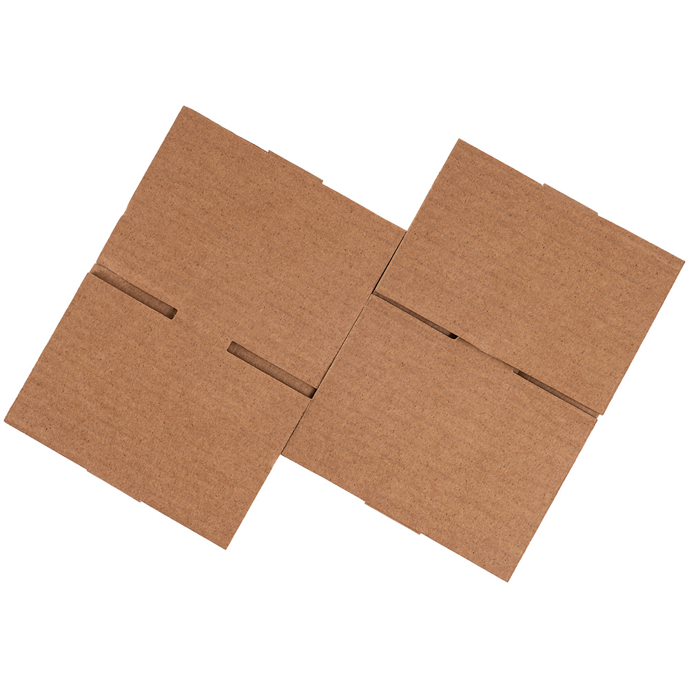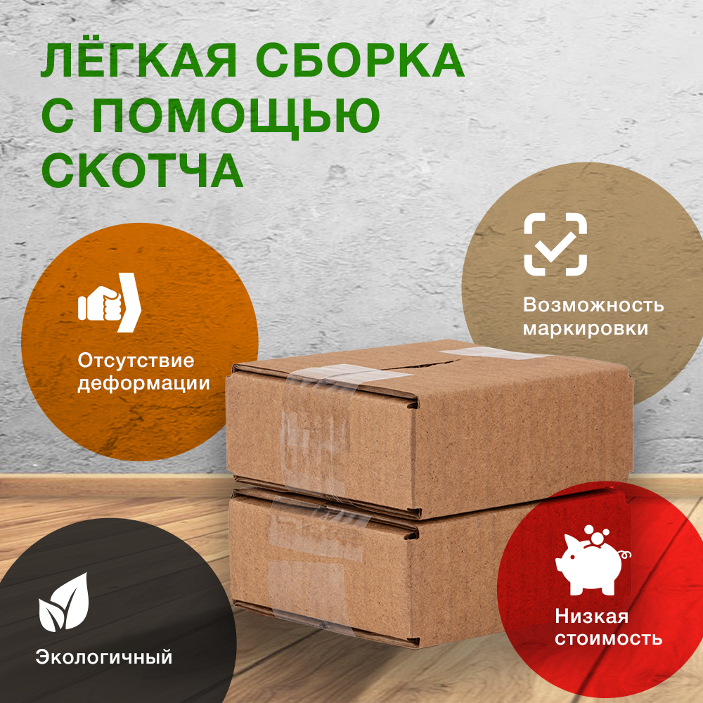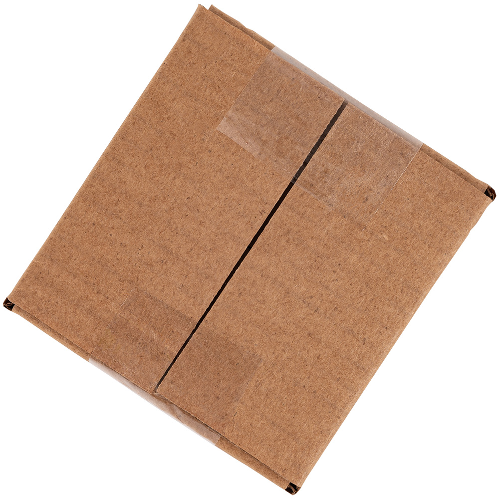Четырехклапанный короб №166 бурого цвета, длиной 95 мм, шириной 90 мм и высотой 30 мм. Изготовлен из трехслойного картона марки Т-23 В. Полезный объём — 0.26 л.