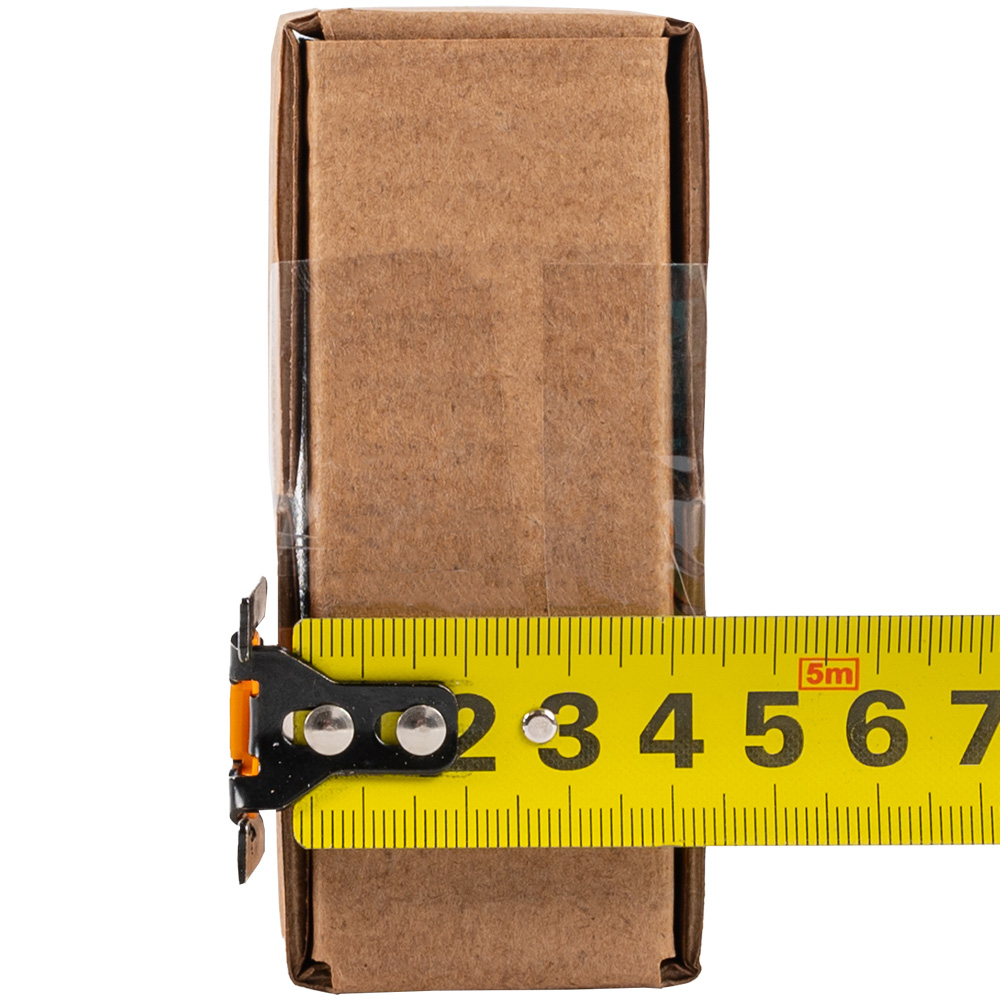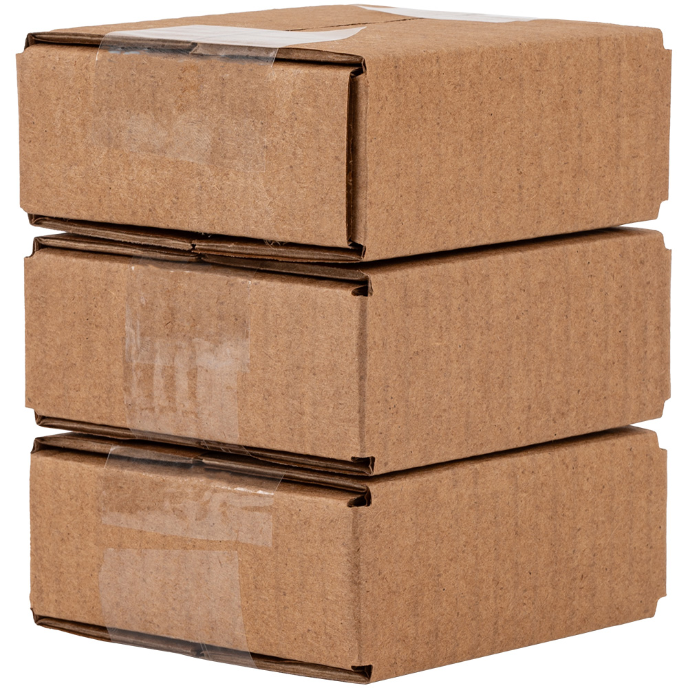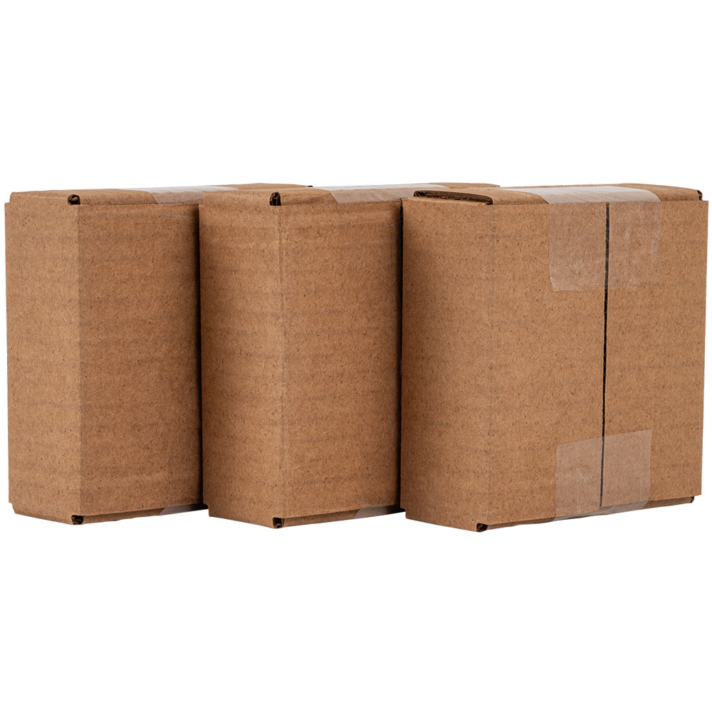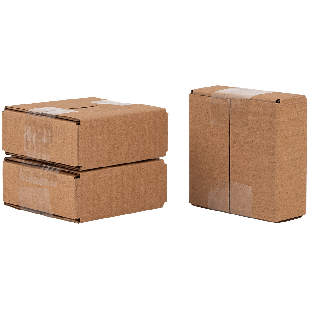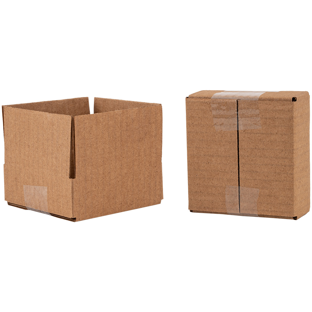 Четырехклапанный короб №166 бурого цвета, длиной 95 мм, шириной 90 мм и высотой 30 мм. Изготовлен из трехслойного картона марки Т-23 В. Полезный объём — 0.26 л.