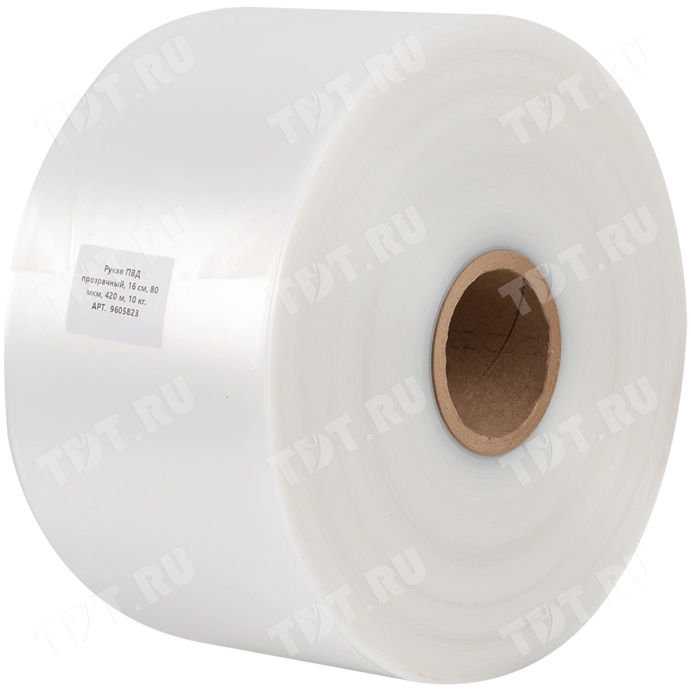 Рукав ПВД прозрачный, 16 см, 80 мкм, 420 м, 10 кг