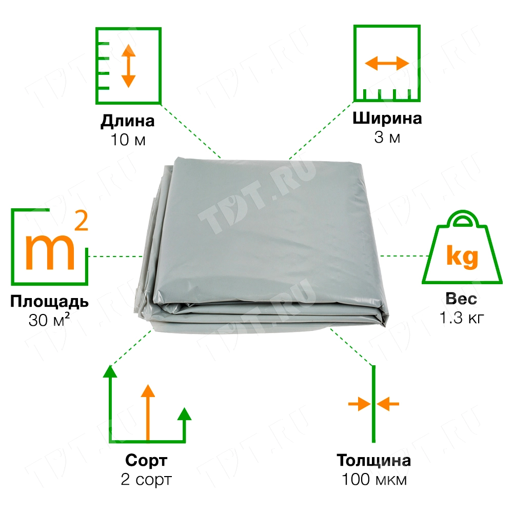 Серая полупрозрачная пленка ПВД (2 сорта) в рукаве, толщиной 100 мкм, шириной 1,5 м, длиной 10 м, при развороте и разрезе общий размер составит 3м*10м. Пленка производится в России.
