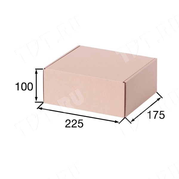 Короб КС-235 бурого цвета, длиной 225 мм, шириной 175 мм и высотой 100 мм. Изготовлен из трёхслойного гофрокартона Т-23 В. Полезный объём — 3.93 л.