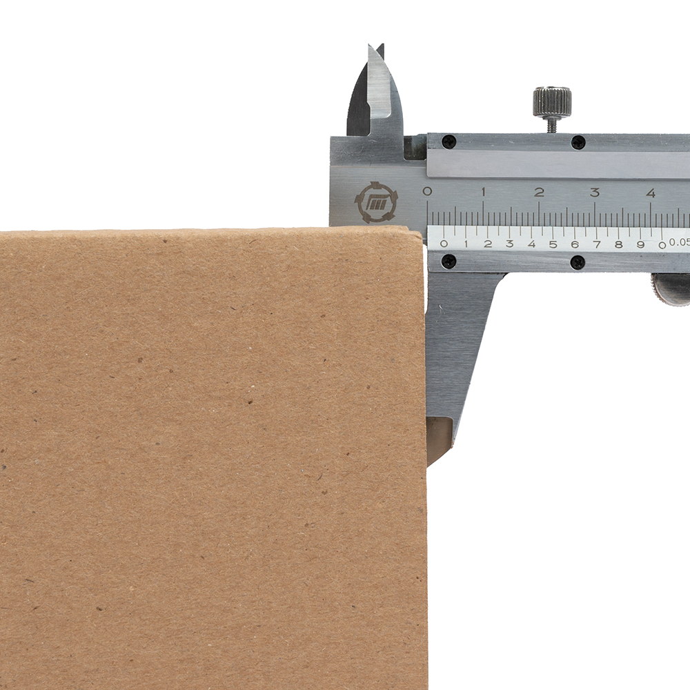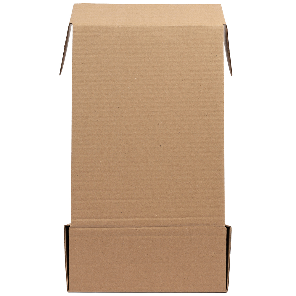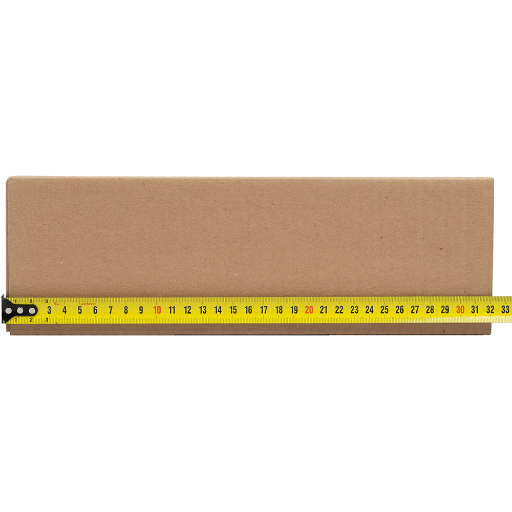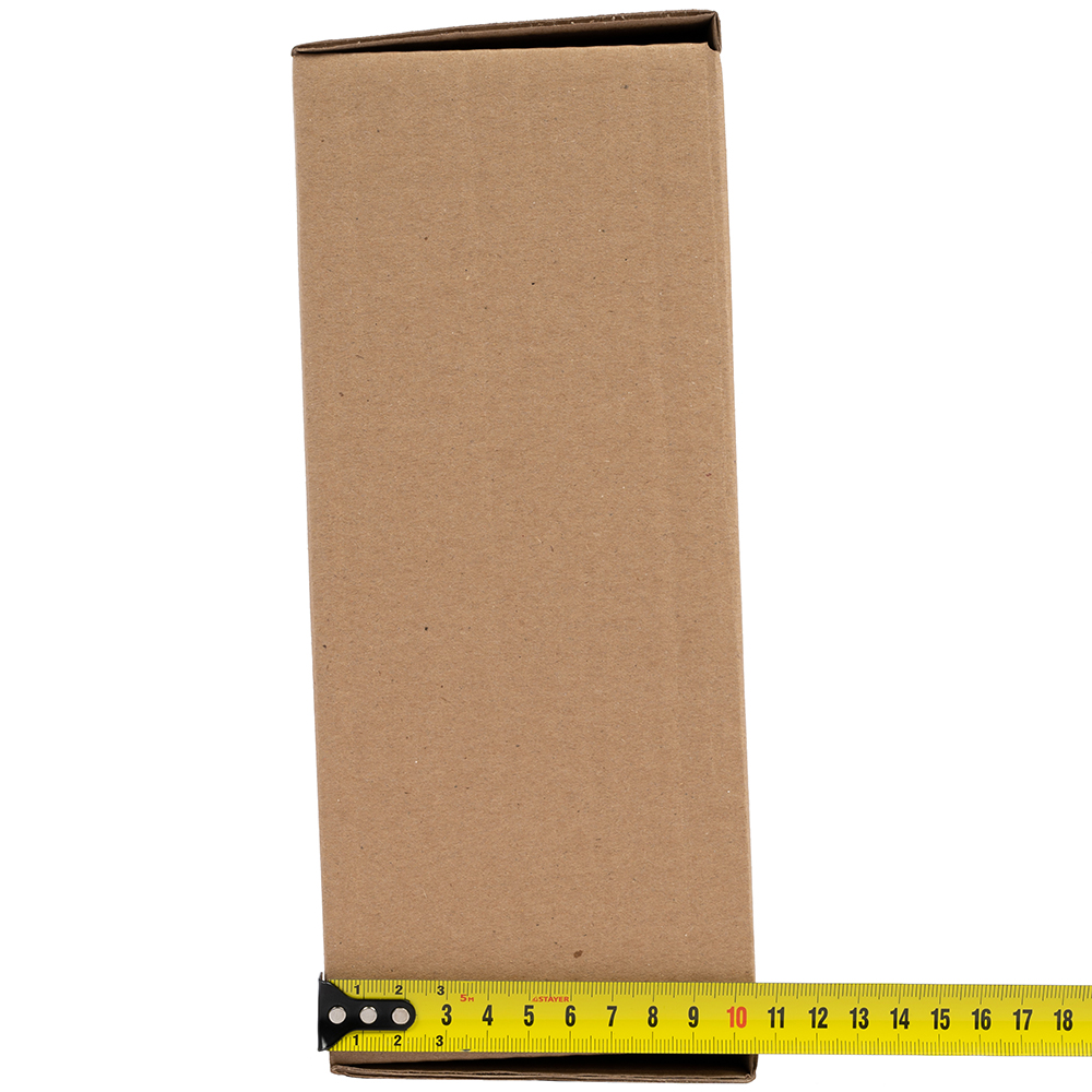 Бизнес Бокс А4 бурого цвета, длиной 225 мм, шириной 300 мм и высотой 100 мм. Изготовлен из гофрокартона Т-23 В. Полезный объём — 6.75 л.