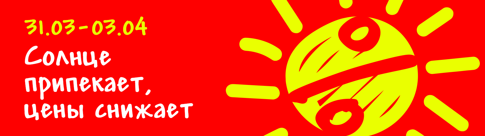 Пока солнце ярко светит и греет на улице, мы согреем ваш бюджет выгодными предложениями! В честь наступления тёплых дней запускаем новую распродажу: «Солнце припекает — цены снижает»!